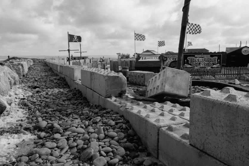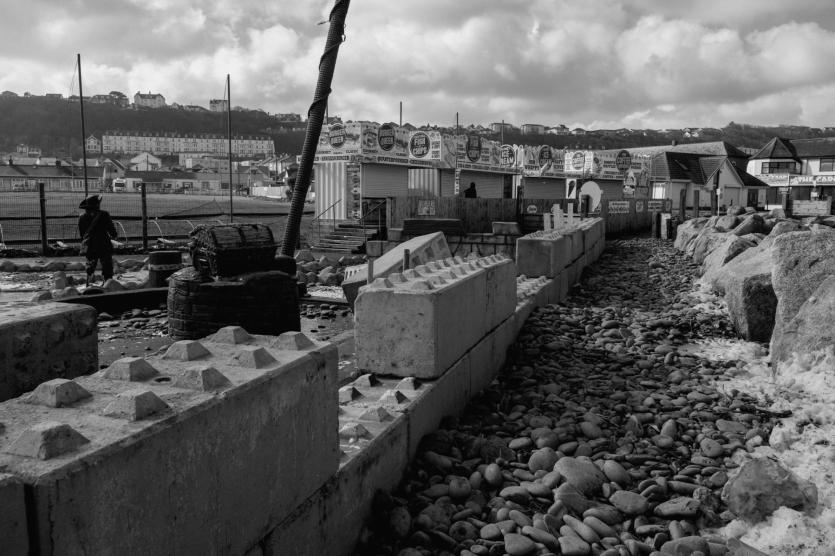 James Moore Photography shared images depicting the aftermath of the storm, including displaced container shops and relocated concrete blocks, indicating the intensity of the coastal battering.