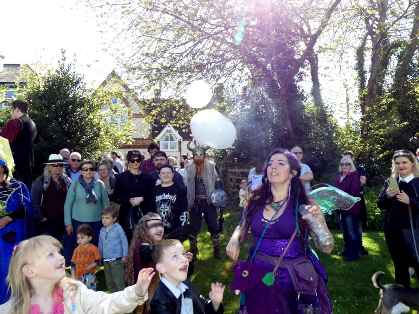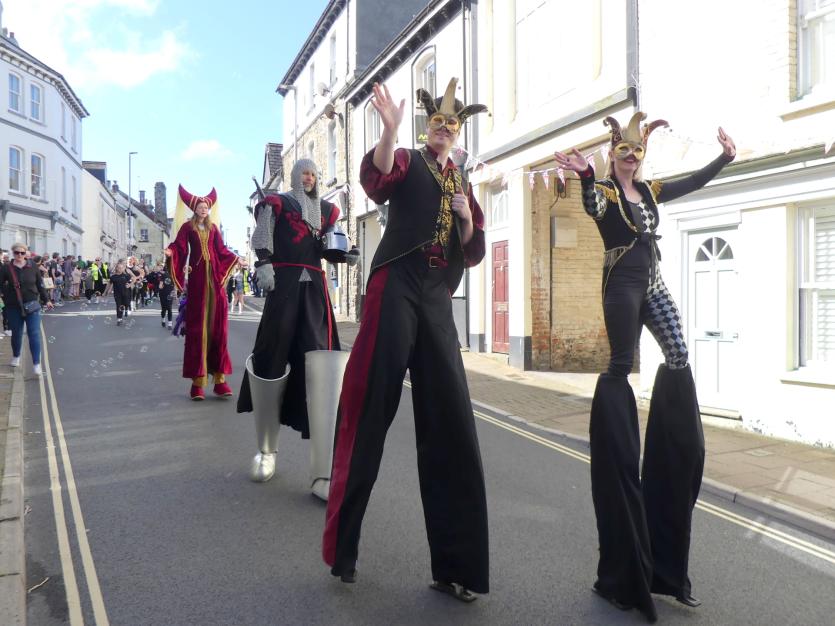 The opening parade included Bideford Youth Pipe Band, Elite Majorettes, Vikings, fancy dress competitors, stilt walkers and many more.
