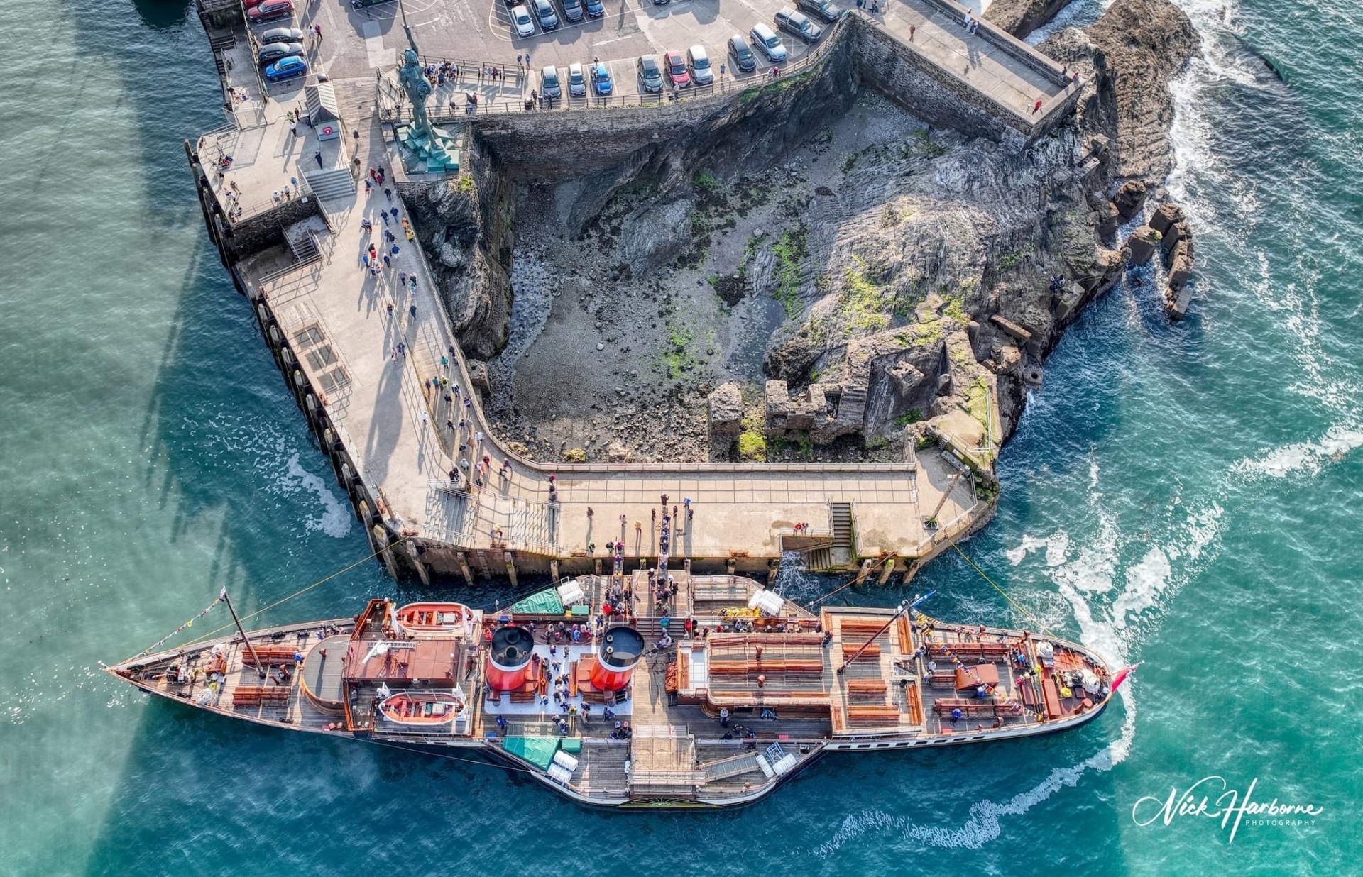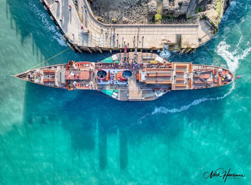 Above: Aerial shots of the Waverley docked at Ilfracombe. Credit: Nick Harborne Photography