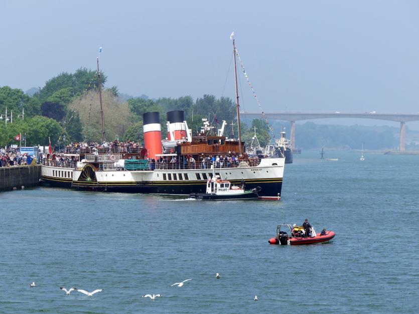 Above: Waverley prepares to depart Bideford, escorted by a pilot boat. Credit: Graham Hobbs