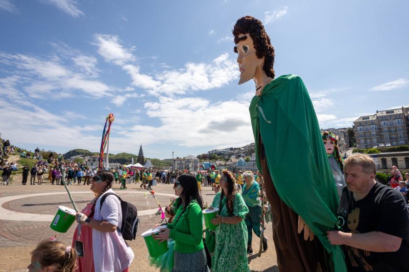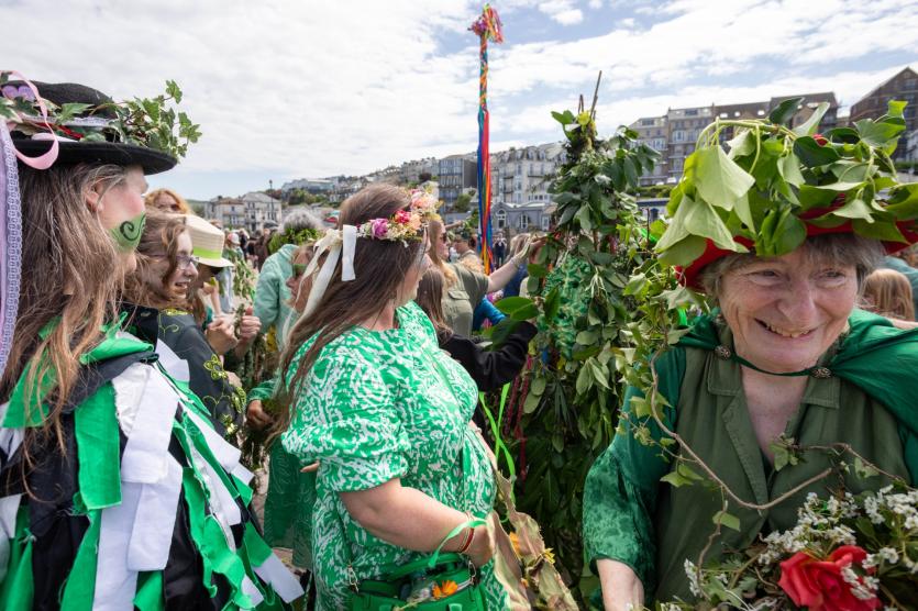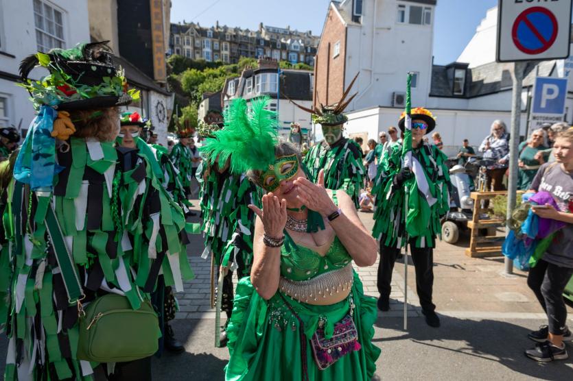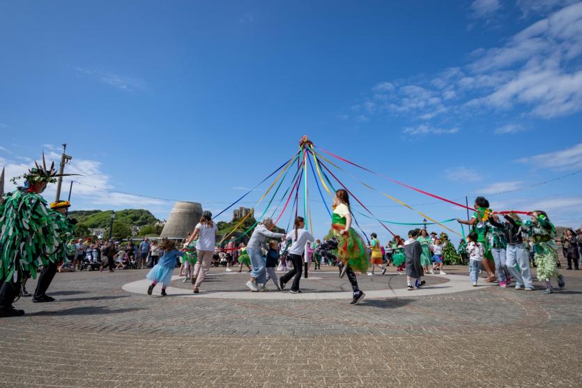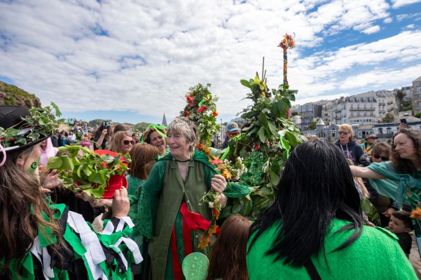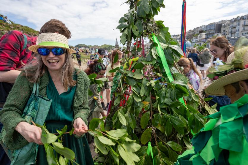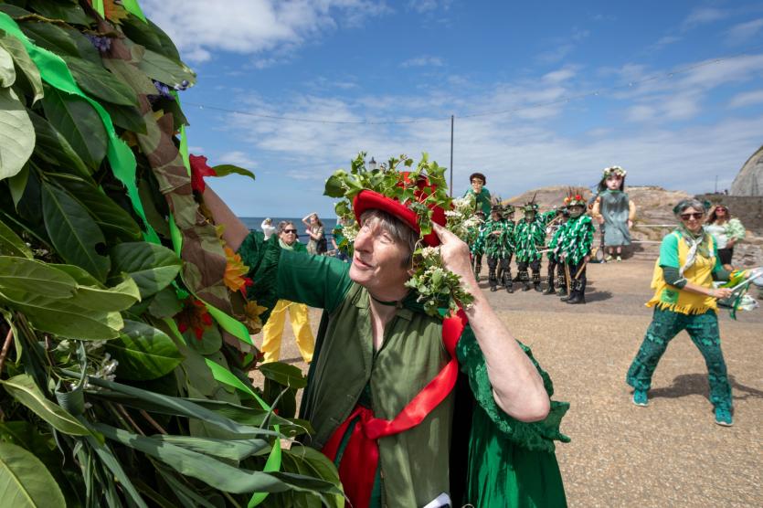 Once again giants, musicians, drummers and green-clad leafy characters paraded through the town, before gathering on the seafront to dance the Maypole.