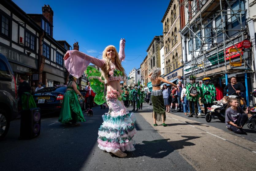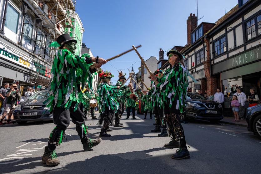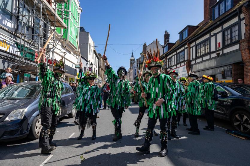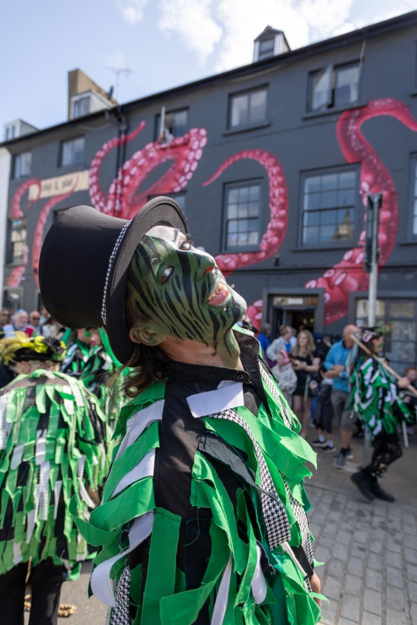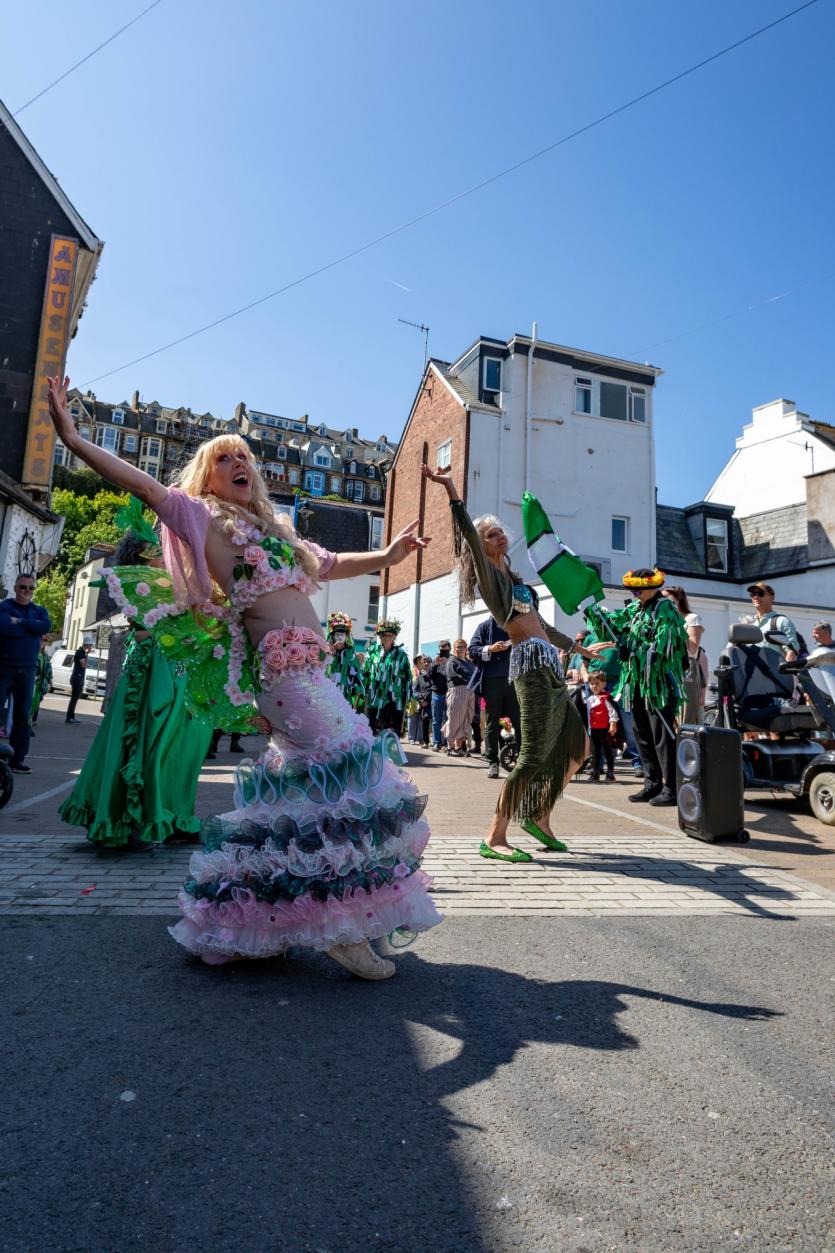 Once again giants, musicians, drummers and green-clad leafy characters paraded through the town, before gathering on the seafront to dance the Maypole.