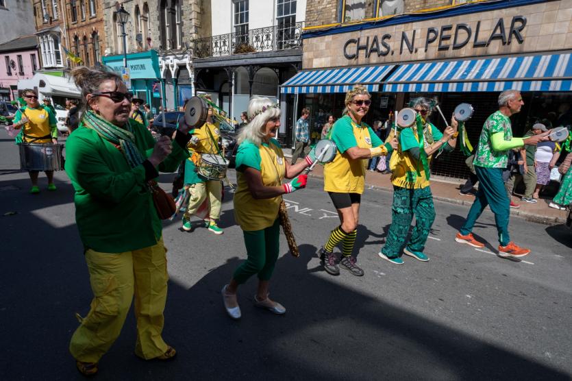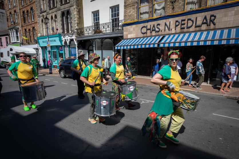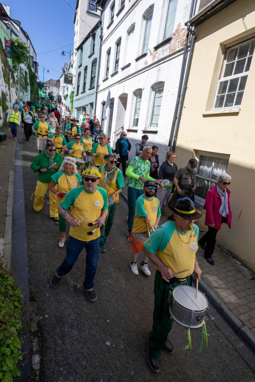 Above: Plenty of music and merriment as the Jack-in-the-Green pared makes its way through Ilfracombe High Street. Credit: Tim Lamerton Photography