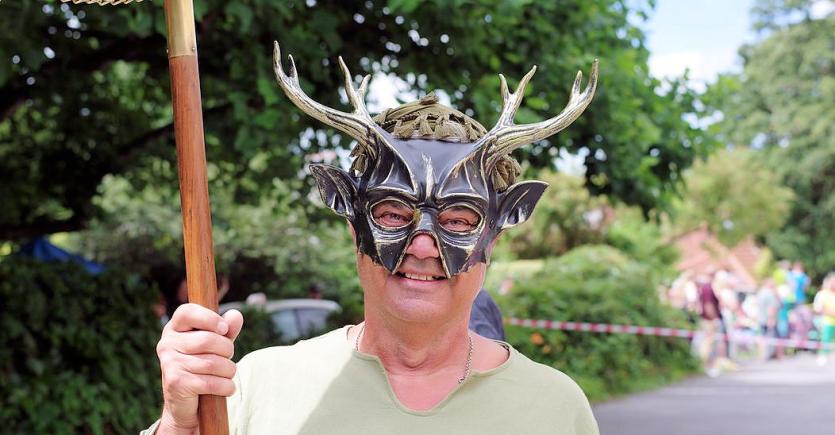 As ever, it began with a parade from Barnstaple Square and through the High Street to Pilton Street, featuring colourful costumed characters, the Green Man himself and the prior of Pilton as well as the iconic green and red masks representing the two ‘factions’.
