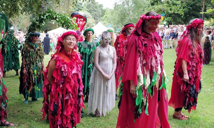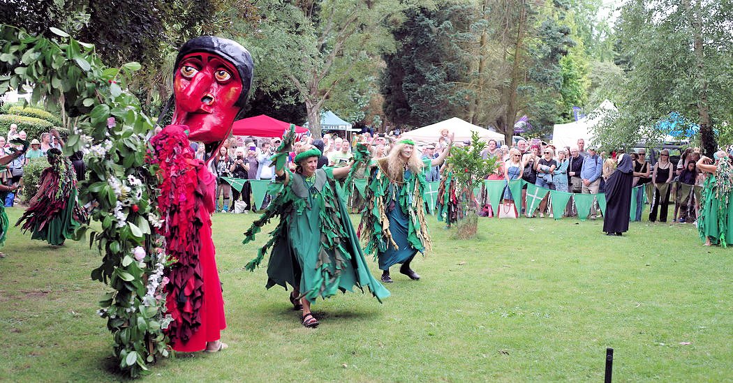 Above: The Pageant is a mainstay of Pilton Green Man Day and a stylised imagining of what happened when the Prior met the Green Man as pagan and church intermingle. Credit: Simon Ellery