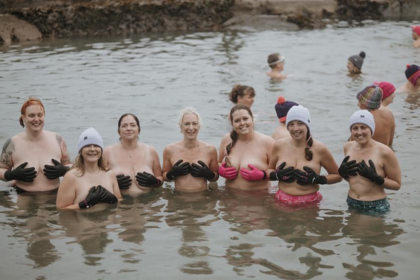 More than 200 women went for a topless swim in Ilfracombe on Sunday morning (October 19) to help raise nearly £40,000 for local NHS cancer services.