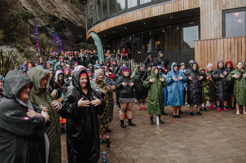 Participants received a goody bag and mug of hot chocolate to warm up after their dip and were also able to hear advice about breast cancer screening and early detection.