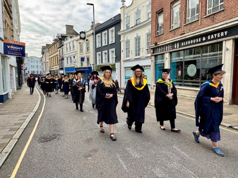 North Devon’s latest newly minted nurses and nursing associates proudly made their way through Barnstaple on Friday (October 17) on their way to their degree graduation ceremonies.