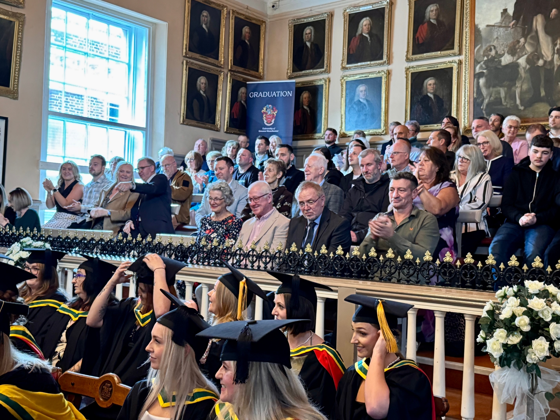 Below: A crowd of proud family and friends look on at the nursing graduation ceremony at Barnstaple Guildhall. Credit: Viral PR