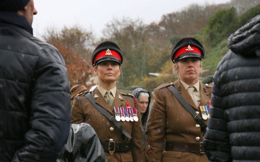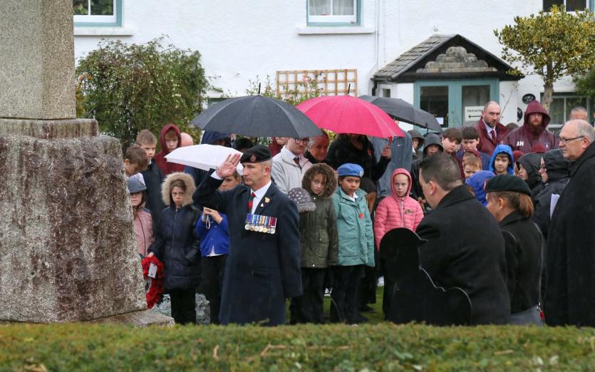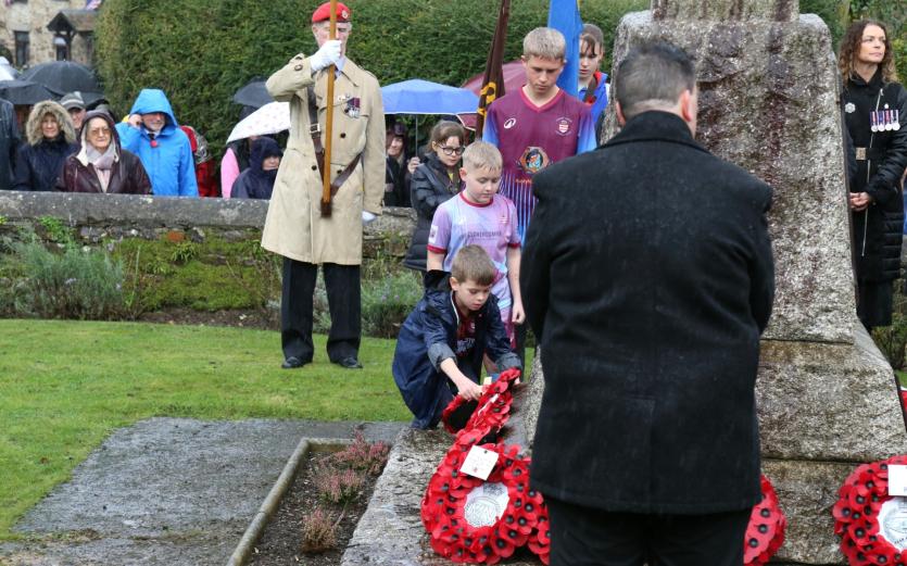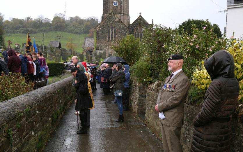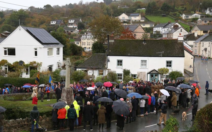 Above: Combe Martin villagers including many veterans, gather at the village war memorial. Credit: Simon Stuart