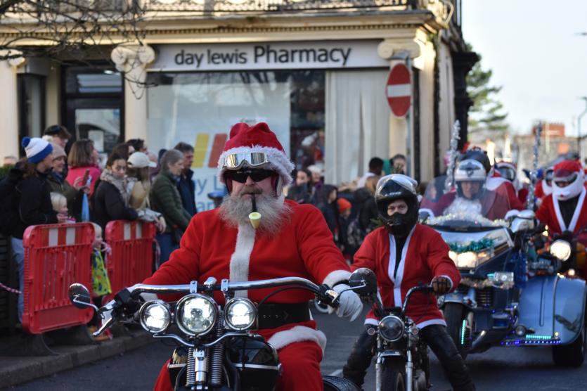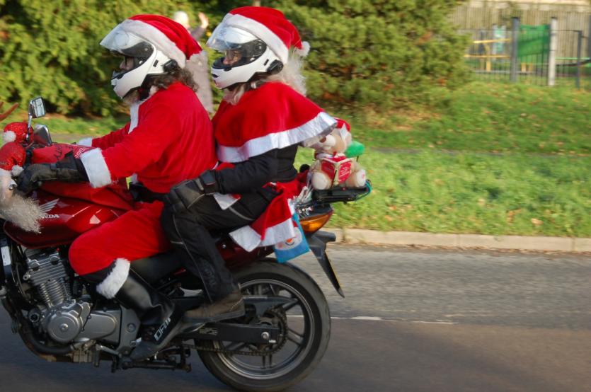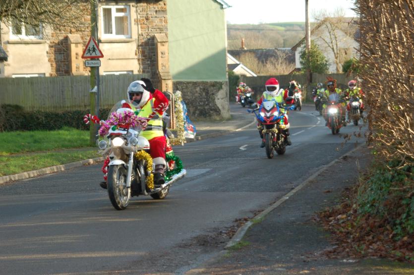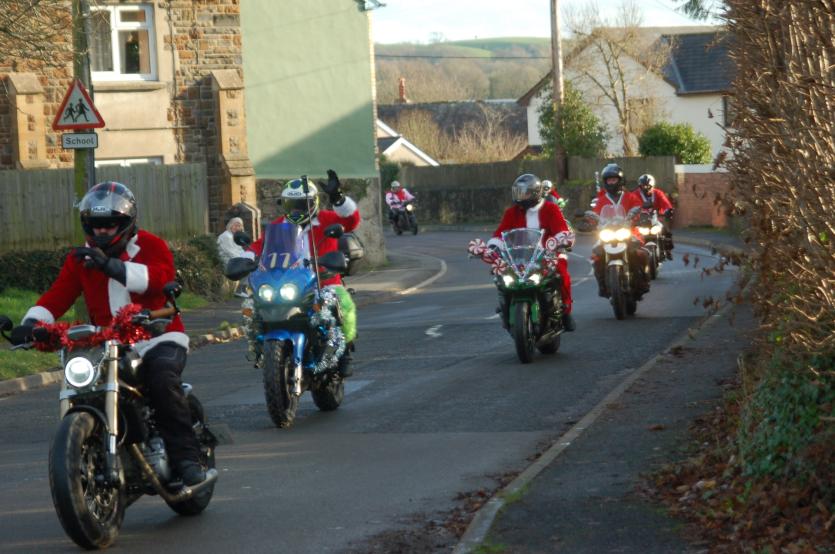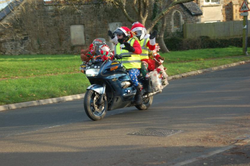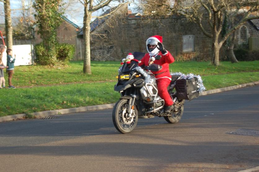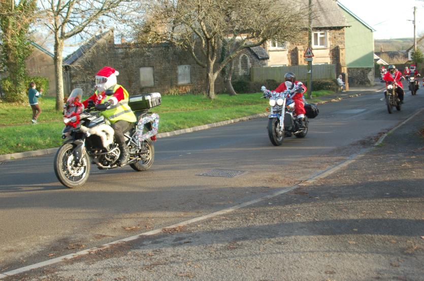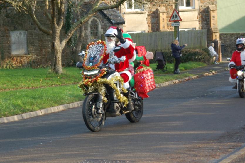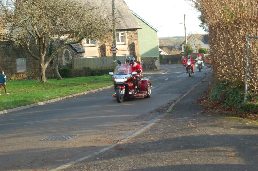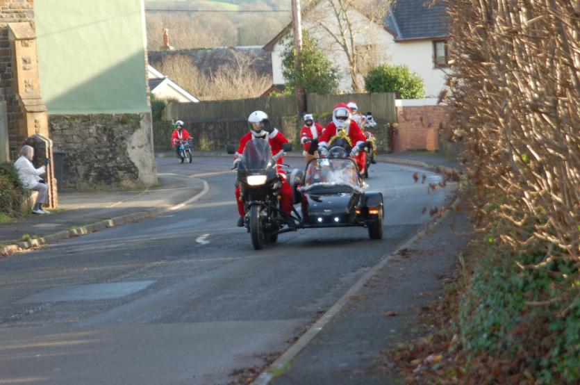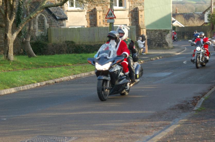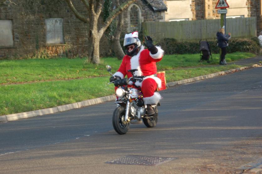 The Santas on bikes make their way through Landkey Credit: Richard Maynard