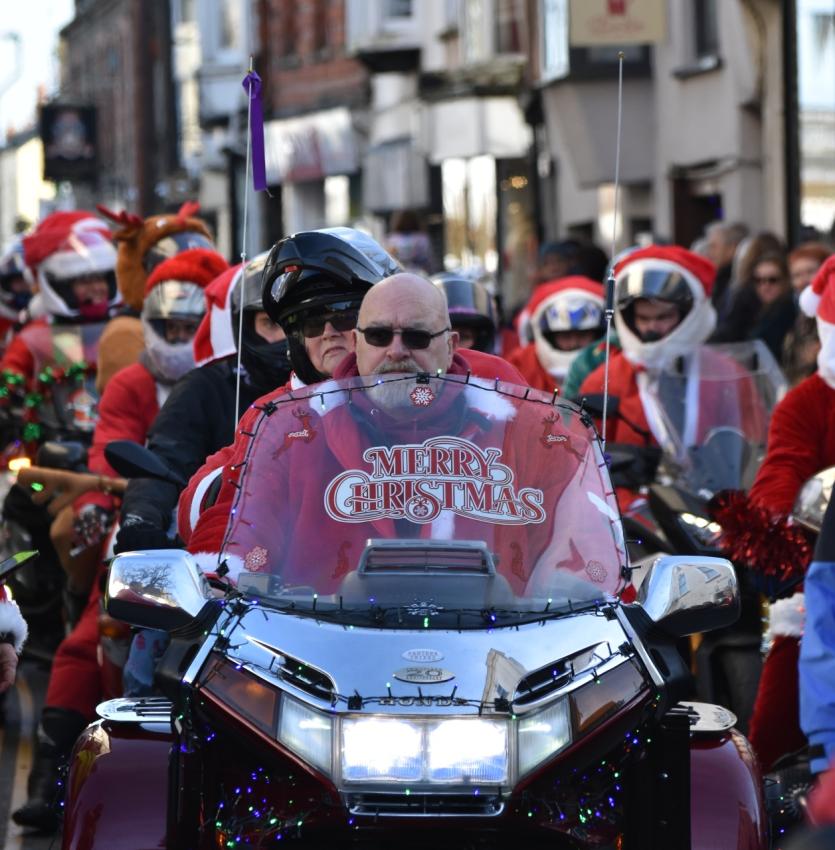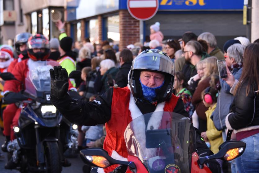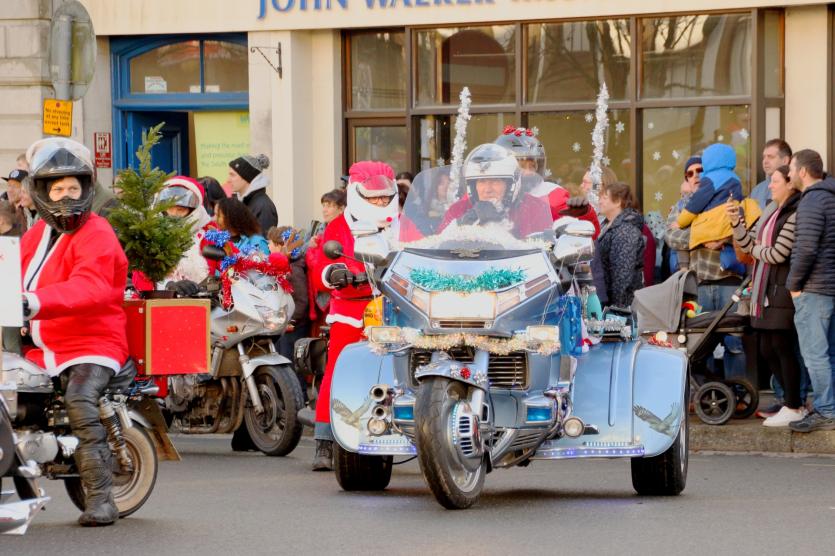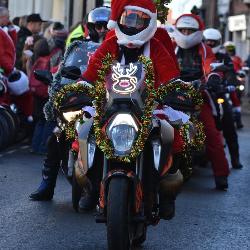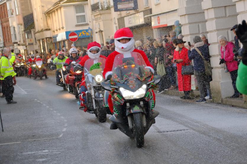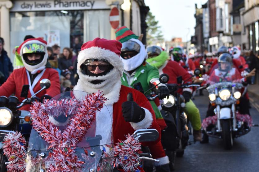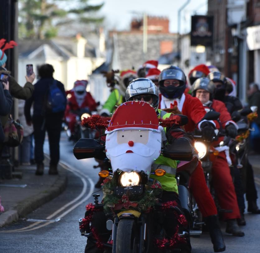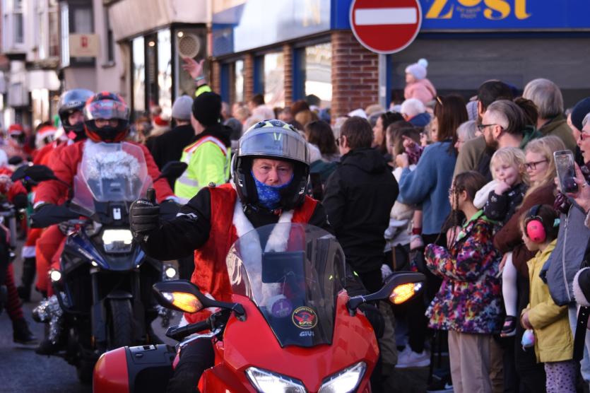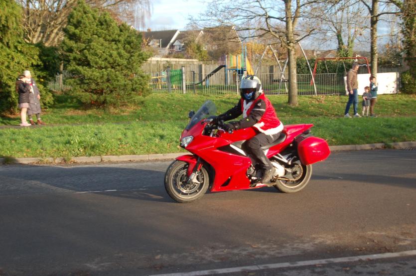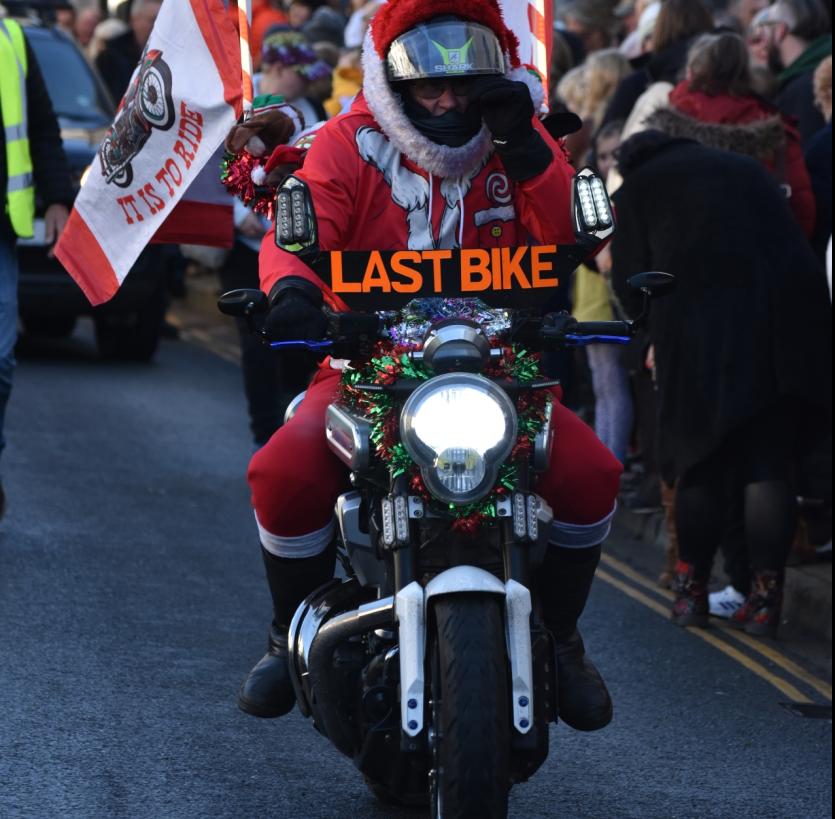 The Santas on bikes make their way through Landkey Credit: Richard Maynard