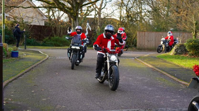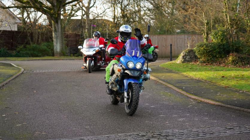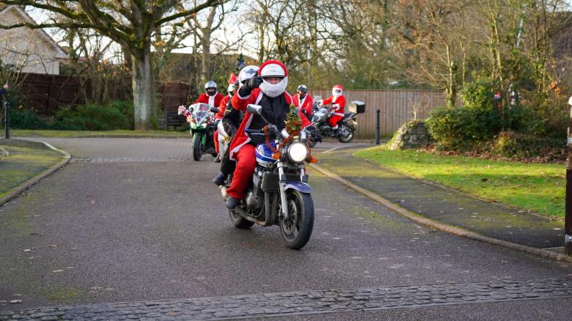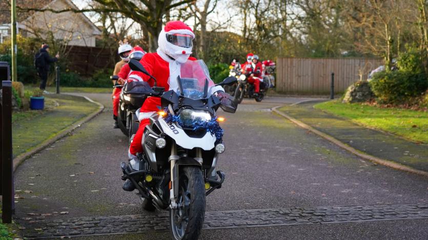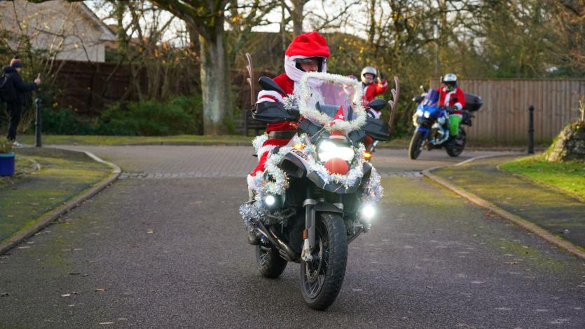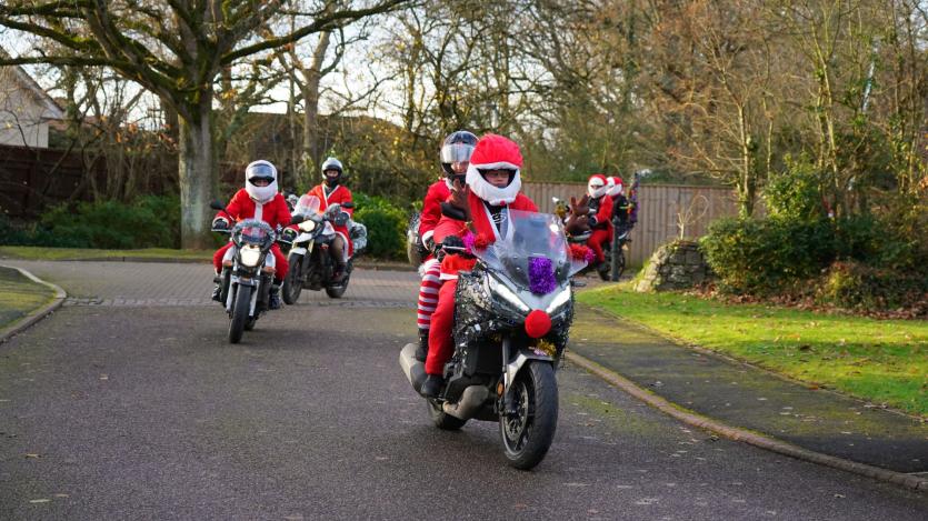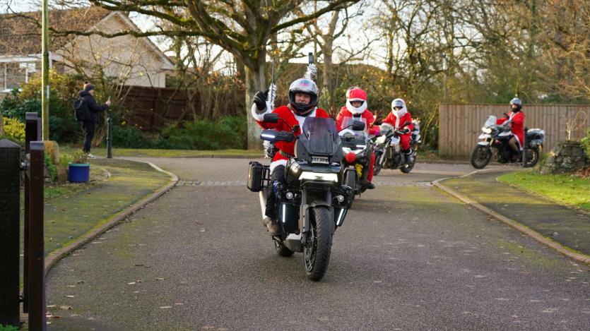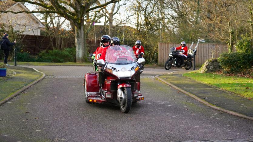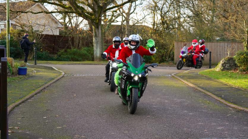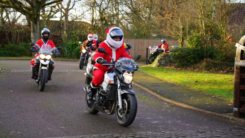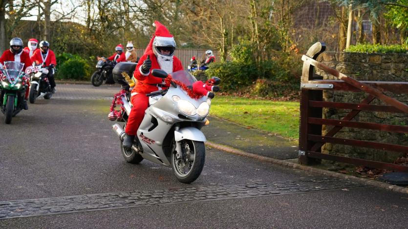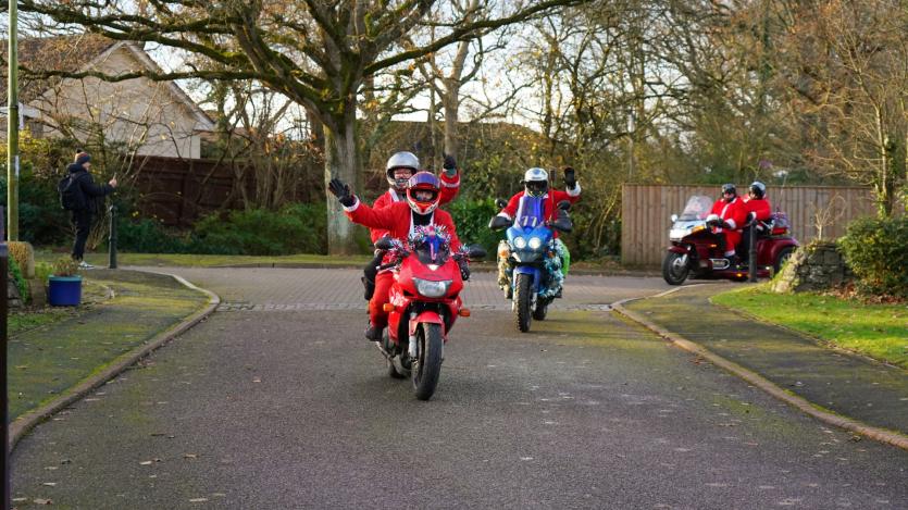 The biking Santas arrive at Little Bridge House in Fremington. Credit: AW Photographic