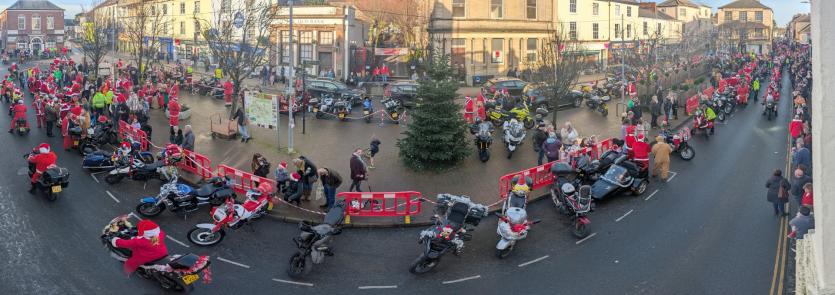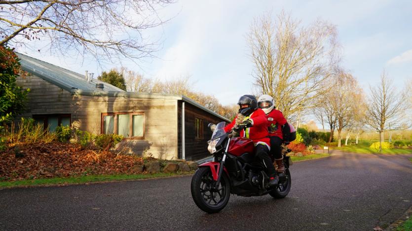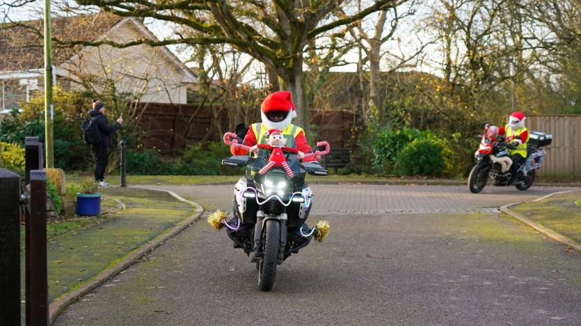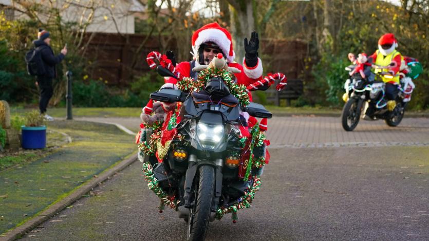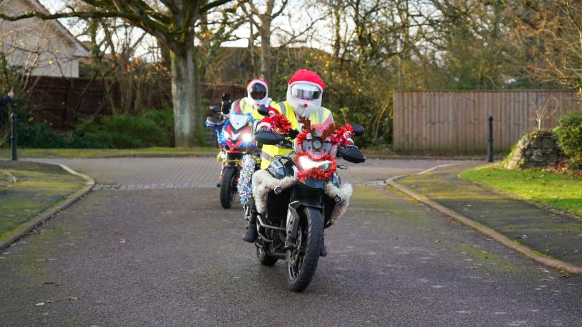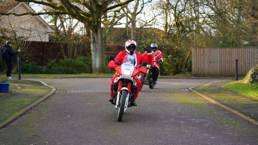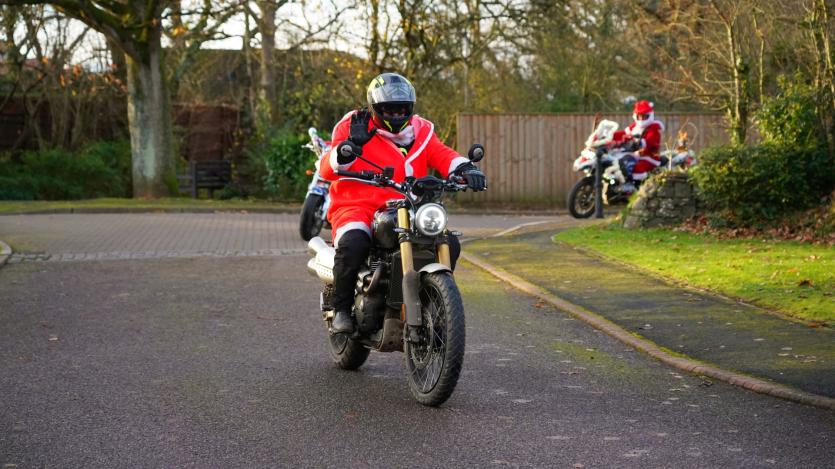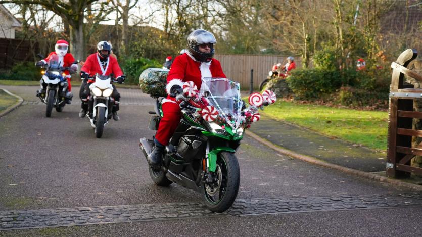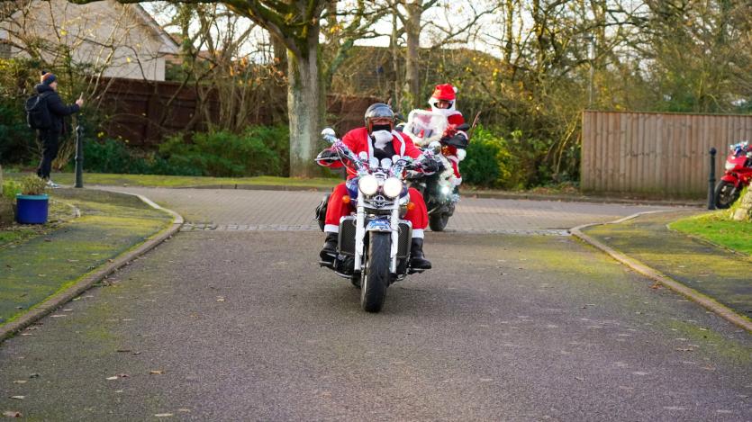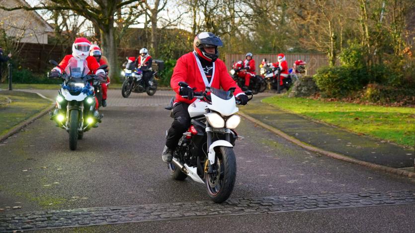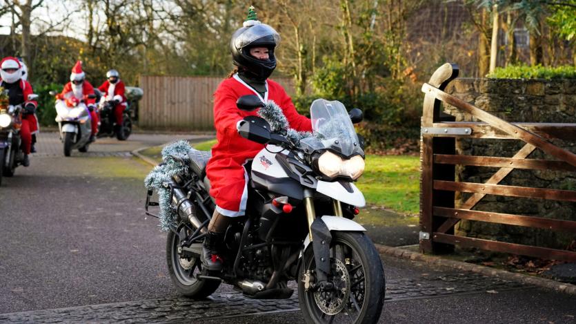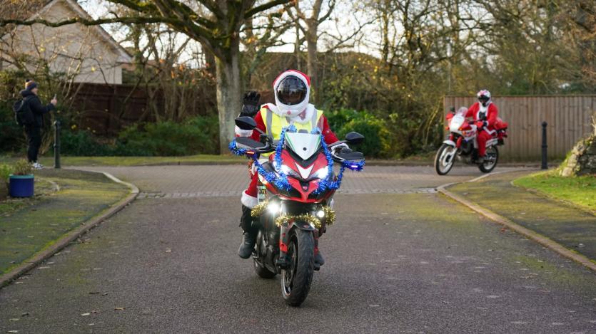 The biking Santas arrive at Little Bridge House in Fremington. Credit: AW Photographic