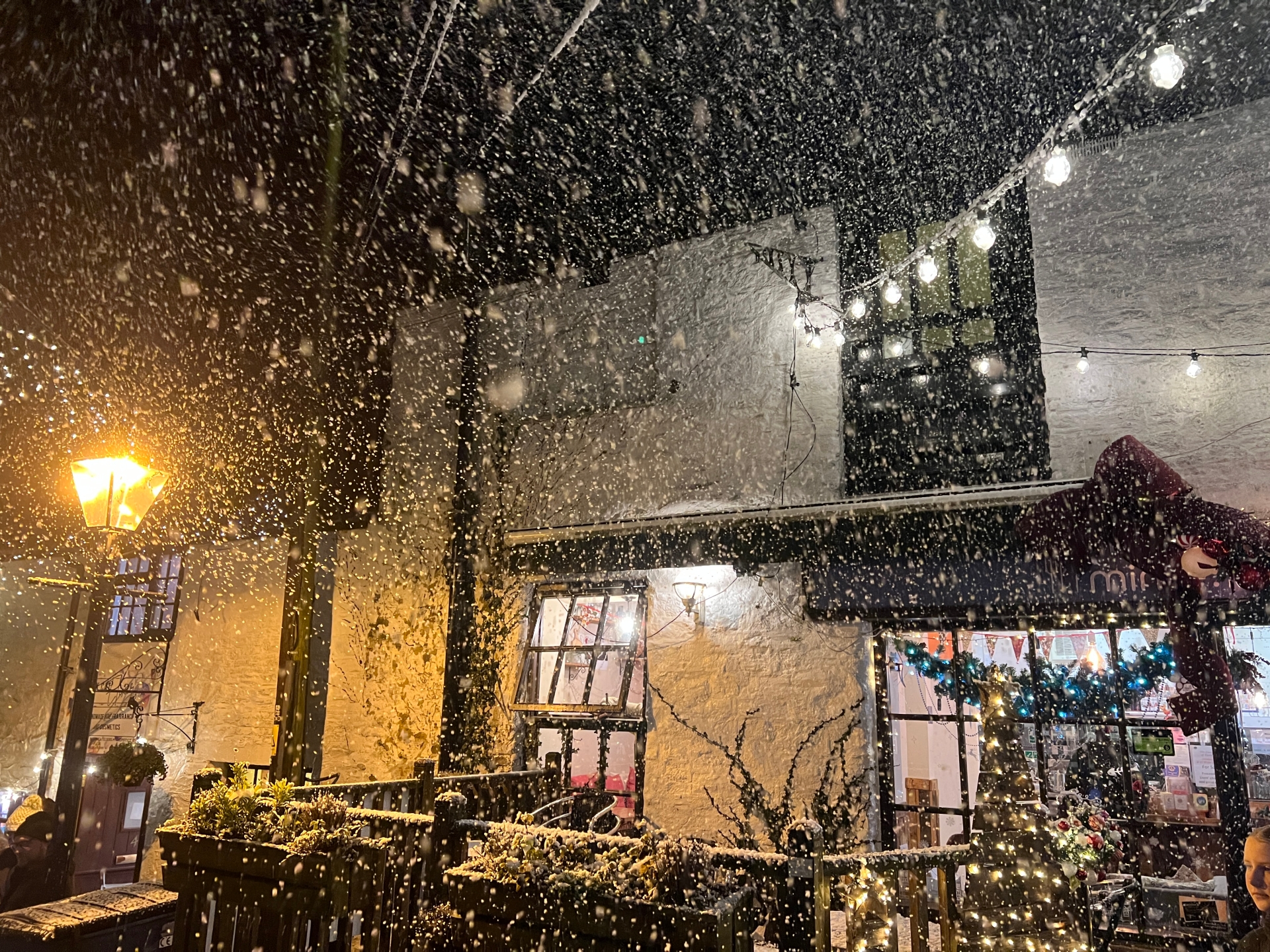 ABOVETavistock cafe Mime proved a hit with their snow machine (Image: Jamie Townsend)
