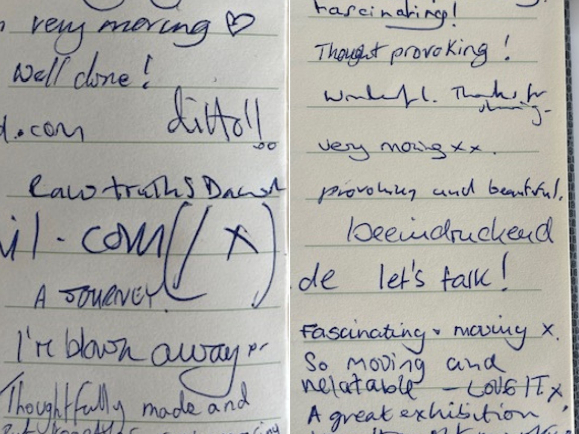 The visitors’ book for A Tamoxifen Diary has been full of praise for the work, with many saying it was ‘deeply moving’, others felt it was ‘brave’ and ‘bold’ while one person simply said ‘I am blown away!’