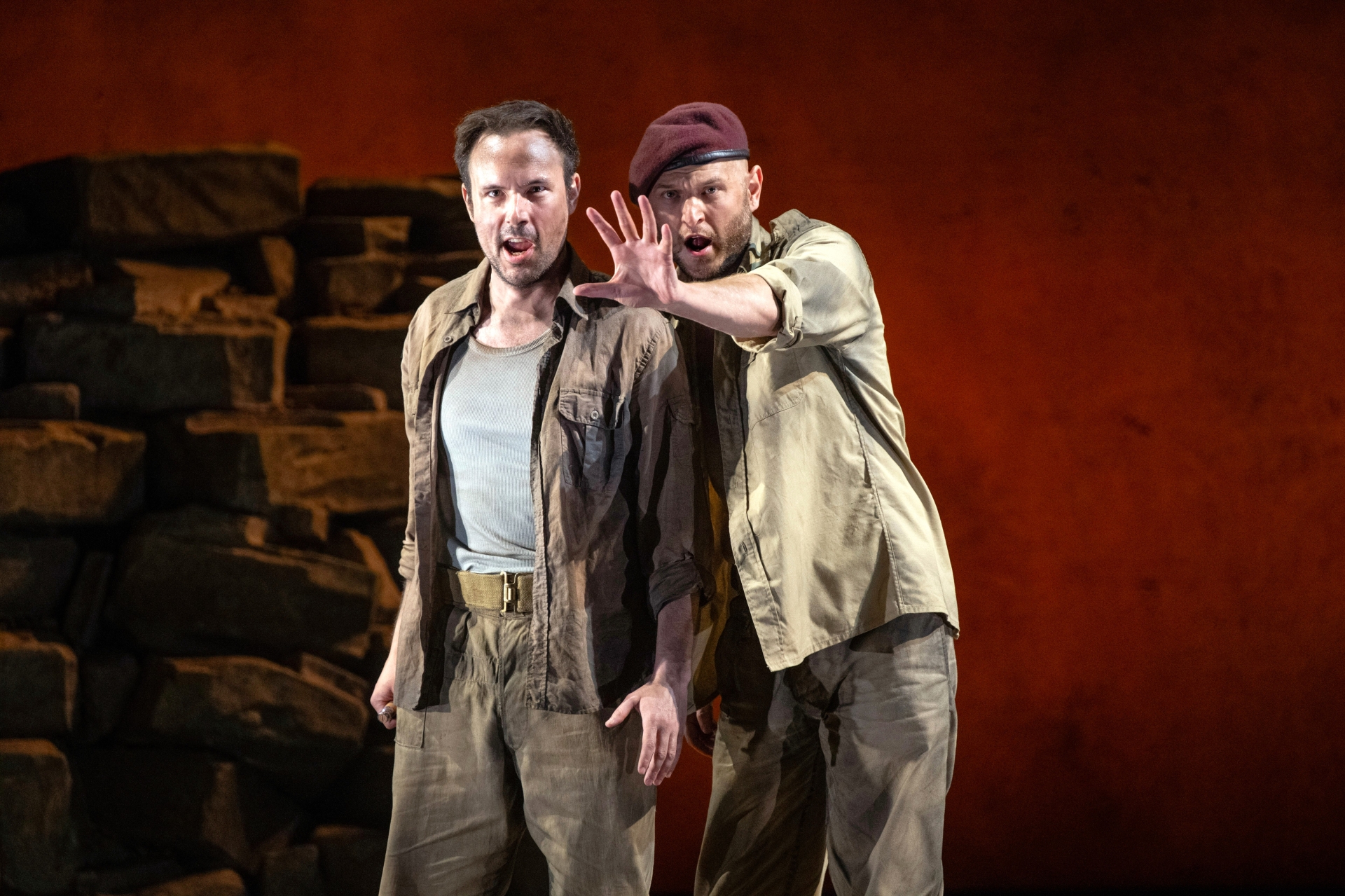 Above: Kieran Rayner as Tarquinius and Edmund Danon as Junius in The Rape of Lucretia. Credit: Richard Hubert-Smith