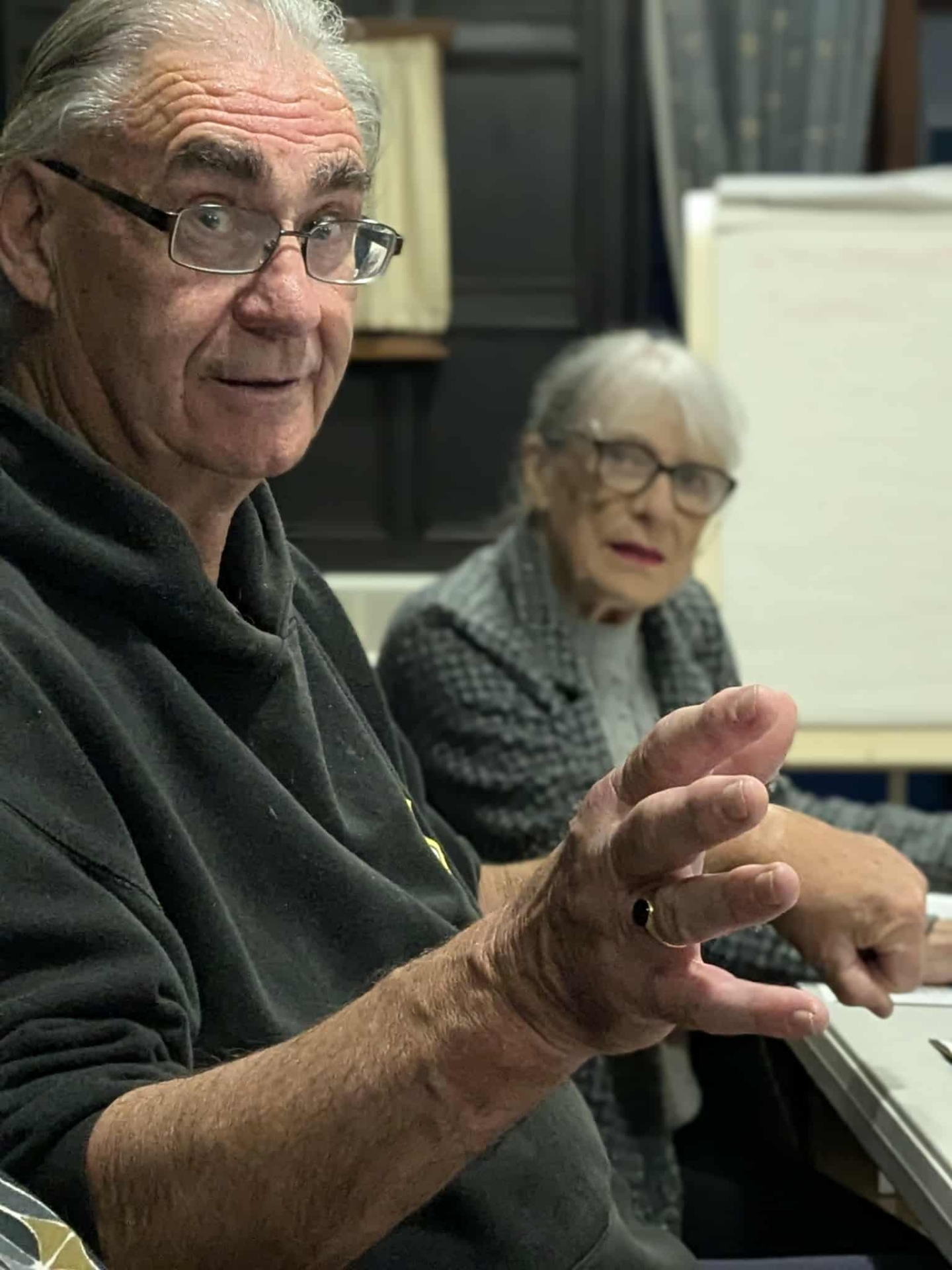 Above: Director John Hedge and play author Val Howes, who also both appear in When Arthur Met His Deadline. Credit: Torrington Players
