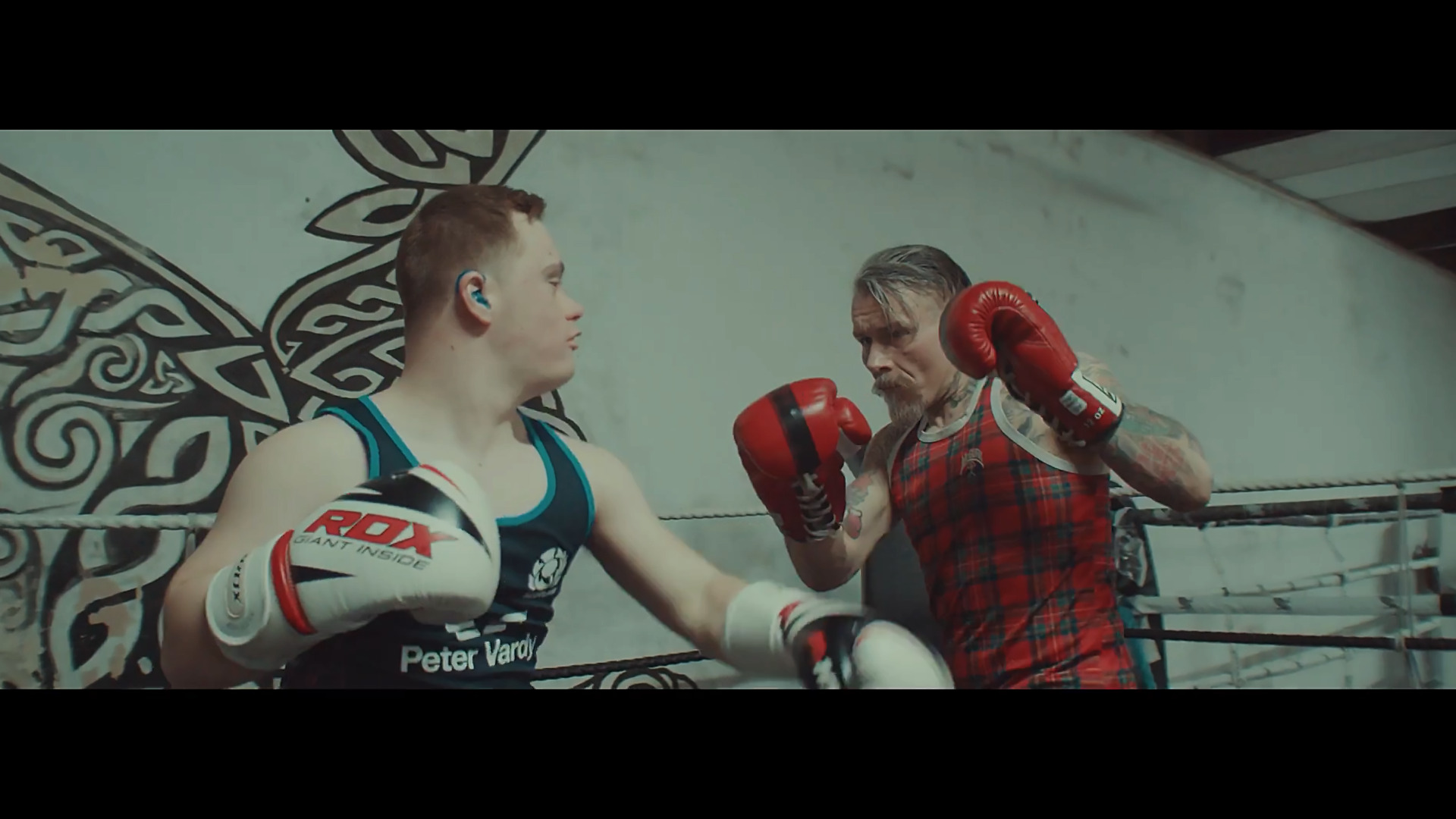 Above: Keir starring as a young boxer in the Skerryvore music video Eye of the Storm. Credit: Stuart Alexander/Shootback Productions