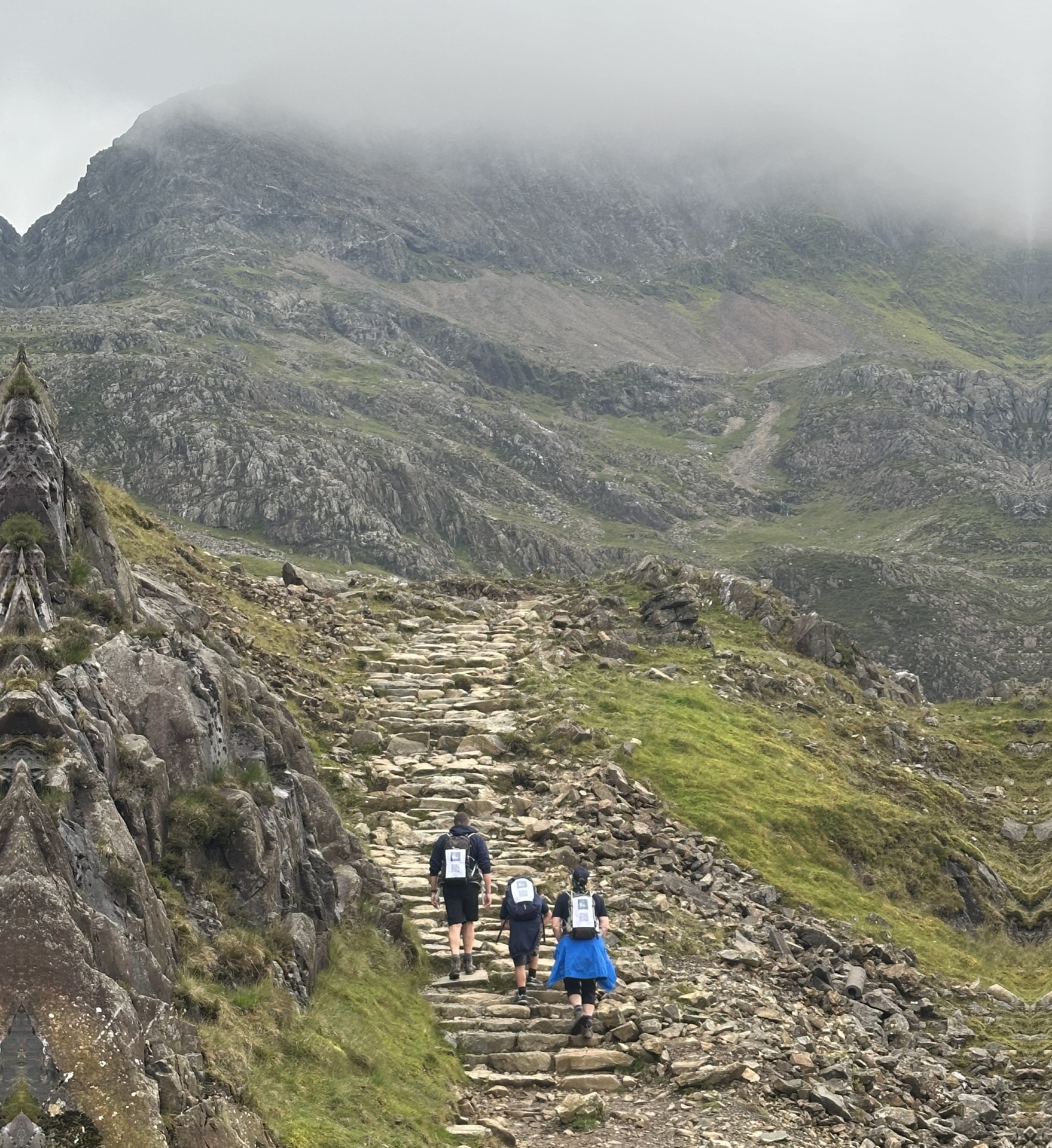 Above: Some of Jack’s group making their way up towards the summit of Mt Snowdon as fog and chill winds began to move in. Credit: Katie Roberts