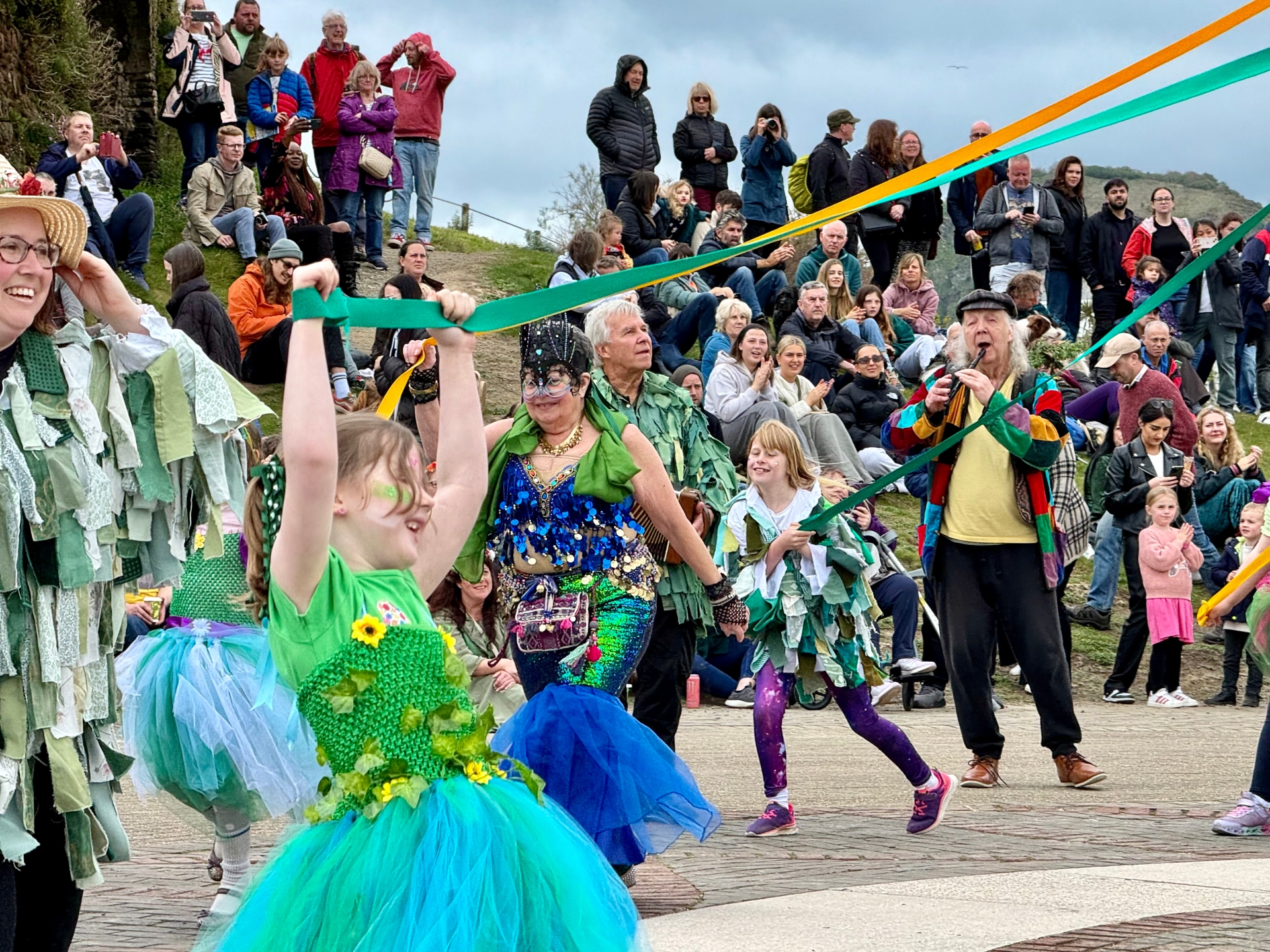 The procession ends at the Clapping Circle on the seafront by Capstone and there will be Maypole dancing from local children and adults – all are welcome to have a go, as well as Morris dancing.