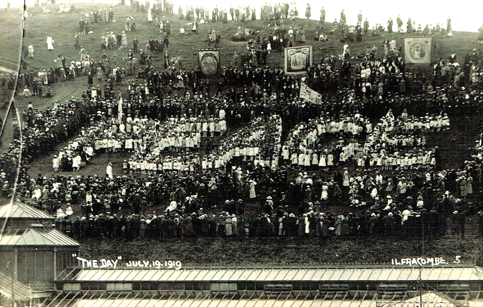 Above: The iconic ‘Peace’ image captured on Capstone in Ilfracombe in 1919 after the end of the Great War.
