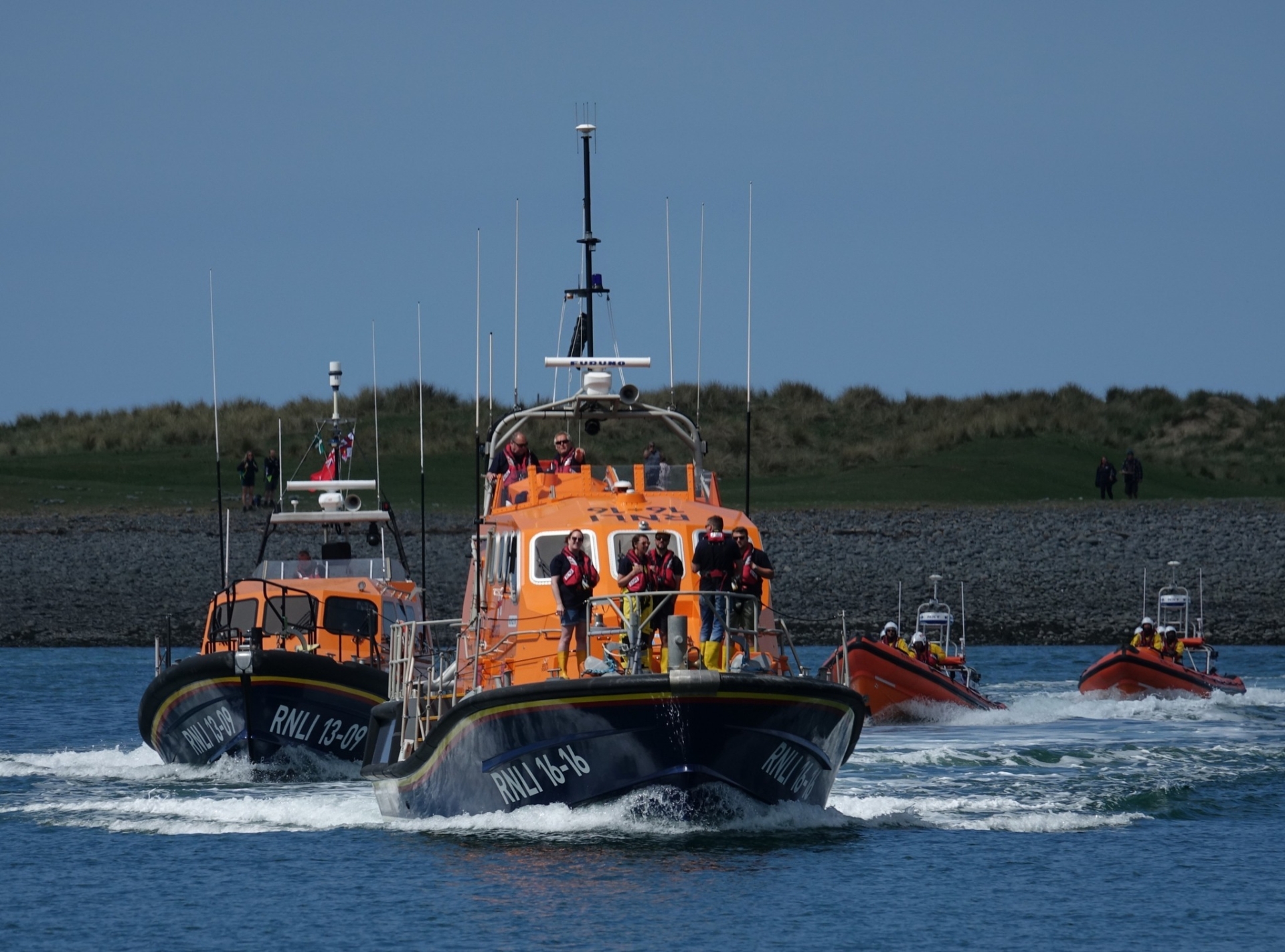 North Devon lifeboats from Ilfracombe and Clovelly paraded into the estuary led by Appledore’s Tamar class all-weather lifeboat the Mollie Hunt.