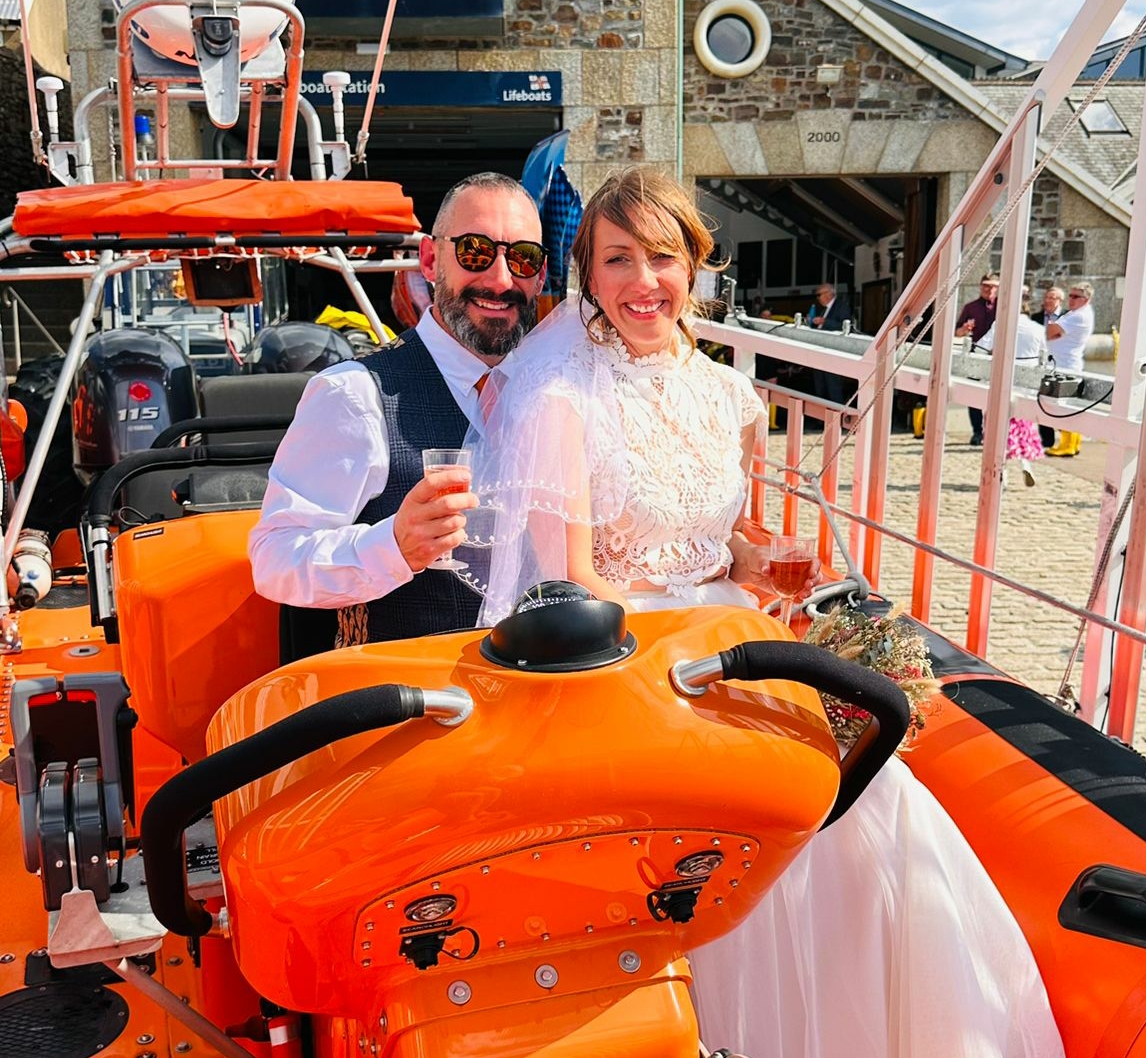 Above: Just married – Appledore RNLI crew Natalie Simmons and Richard Withey. Credit: Lucy LoVel