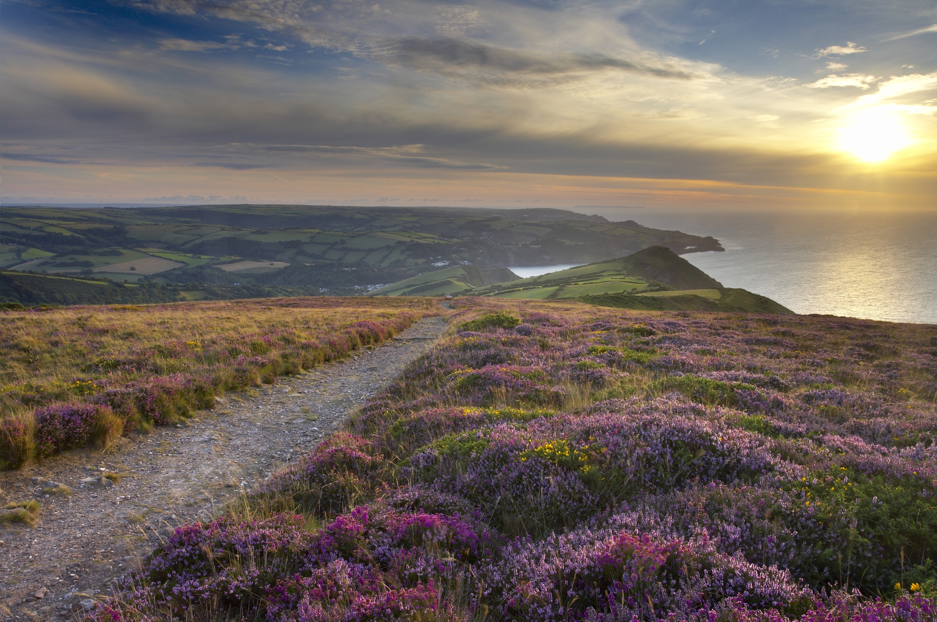 Above: Common heather, Bell heather and Western gorse lining the coastal path on the Great Hangman with the Little Hangman, Devon © National Trust Images/David Noton