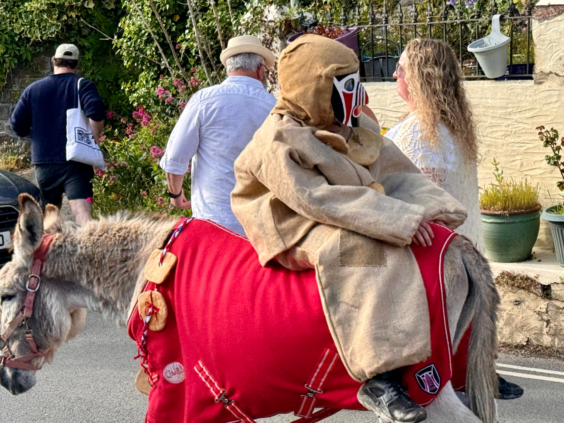 He is then paraded down the main street, sometimes sat back-to-front on a donkey, periodically ‘shot’ and revived by the Hobby Horse and Fools to much clamour of drums, before the procession reaches the beach at sunset and he is cast into the sea.