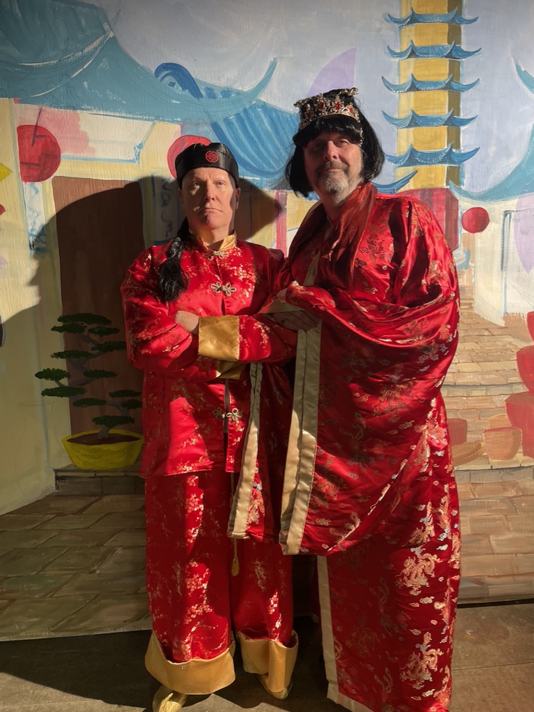 Above: Philip Milton, left, as the Emperor in the Croyde Panto of Aladdin in 2022. Credit: Croyde Players