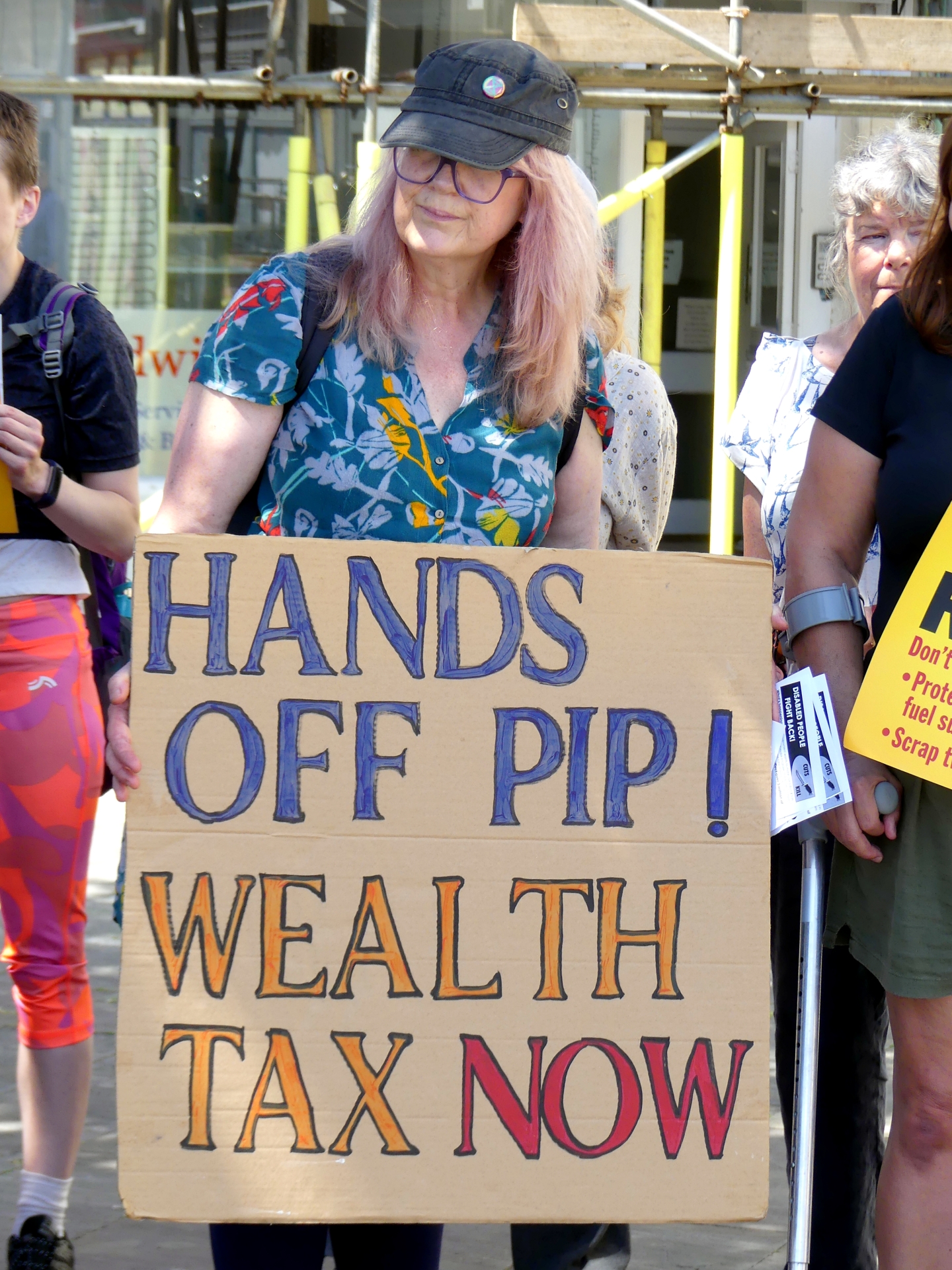 Above: Bideford protestors against the welfare cuts send a message to Sir Keir Starmer. Credit: Graham Hobbs