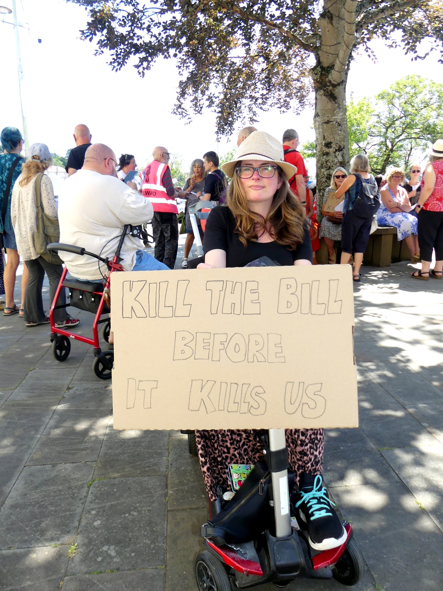 Protestors gathered in Bideford today (Monday, June 30) to call on the Government to ditch its plans for sweeping welfare benefit cuts they say will lead to death or poverty for many disabled people.