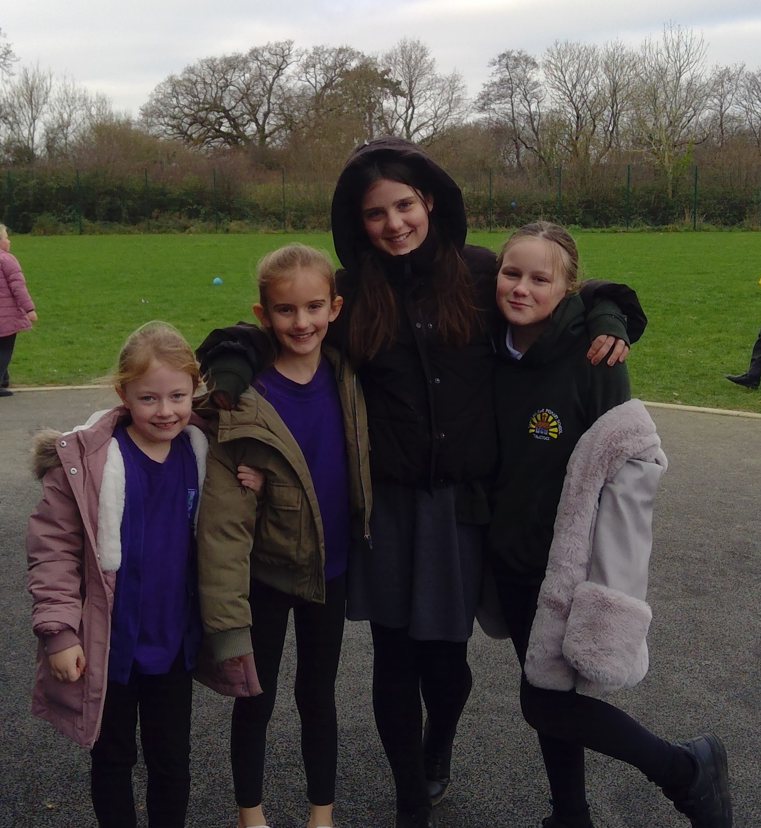 Pupils from Holywell School, who are temporarily homeless, playing with pupils at Roundswell Community Primary after their school was damaged by fire.