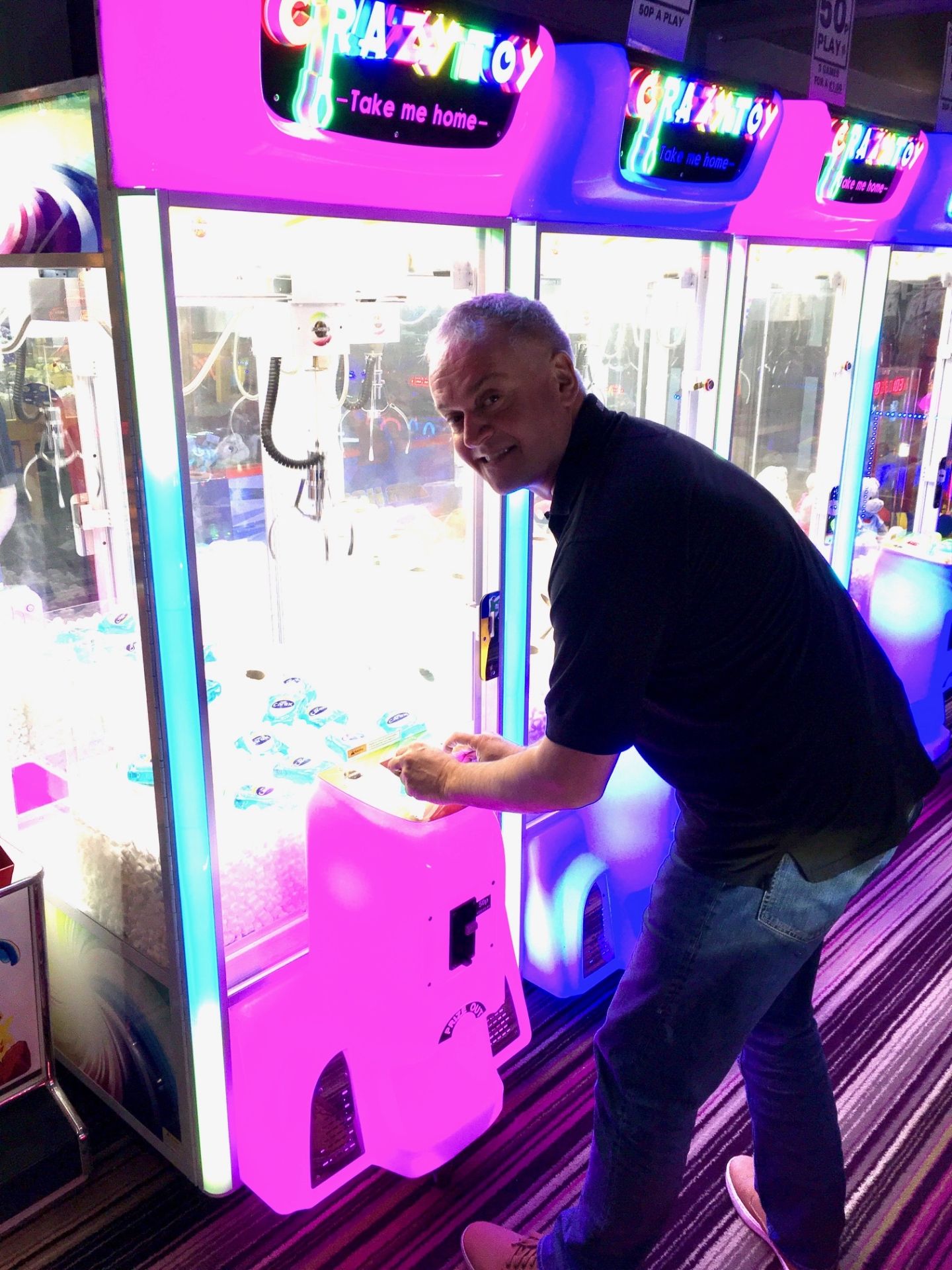 During the Covid-19 epidemic Rob kept spirits up when he poked fun at panic buyers, filling some of his arcade machines with rolls of toilet paper.