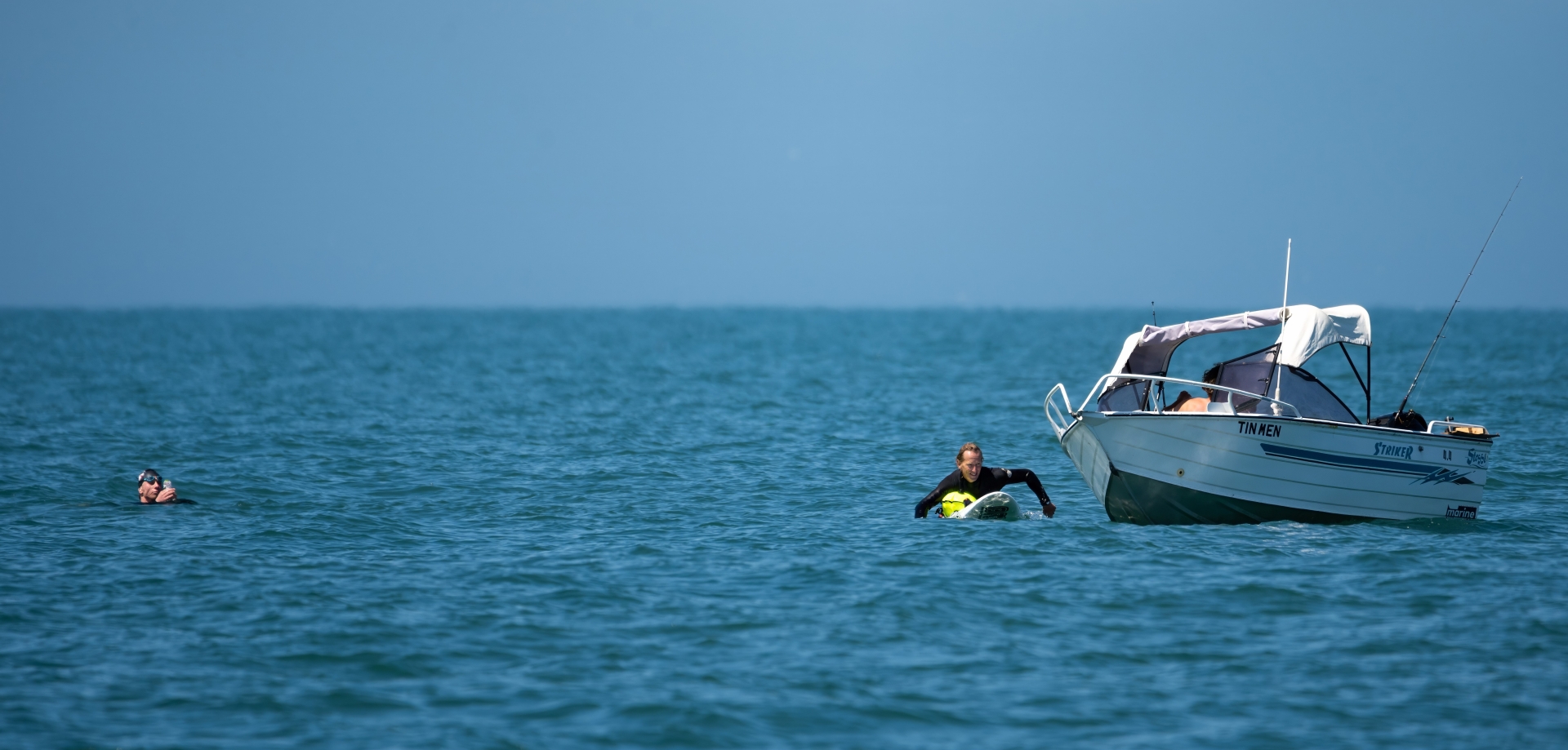 “We had the two safety boats and a crew of friends. I would like to thank Andy Miller, Vaughan Lawson, his son Cory Lawson, my dad Andy Surridge and my brother Zac, Will Bailey, Jonathon’s brother and Josh Simpson who was the doctor on the boat.”