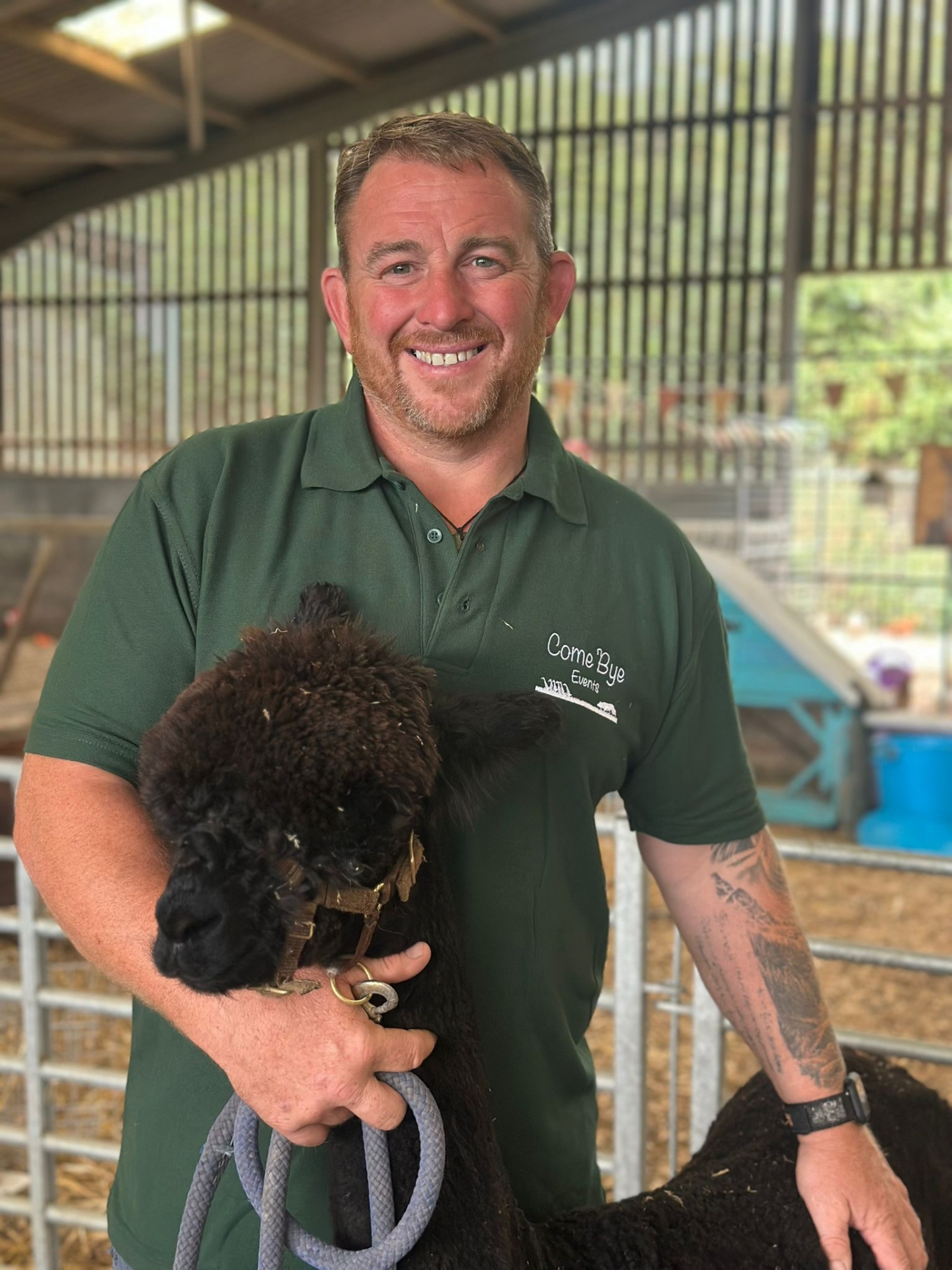 Above: Ozzy the alpaca with Farmer Chris Reid from the Come Bye Duck and Herding Company. Credit: The Mole Resort