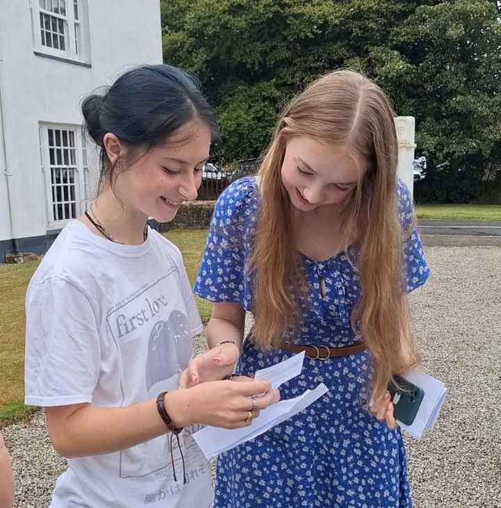 Above: Alice Hunkin (left) achieved four A* grades and will be studying medicine after taking a gap year. Credit: Shebbear College