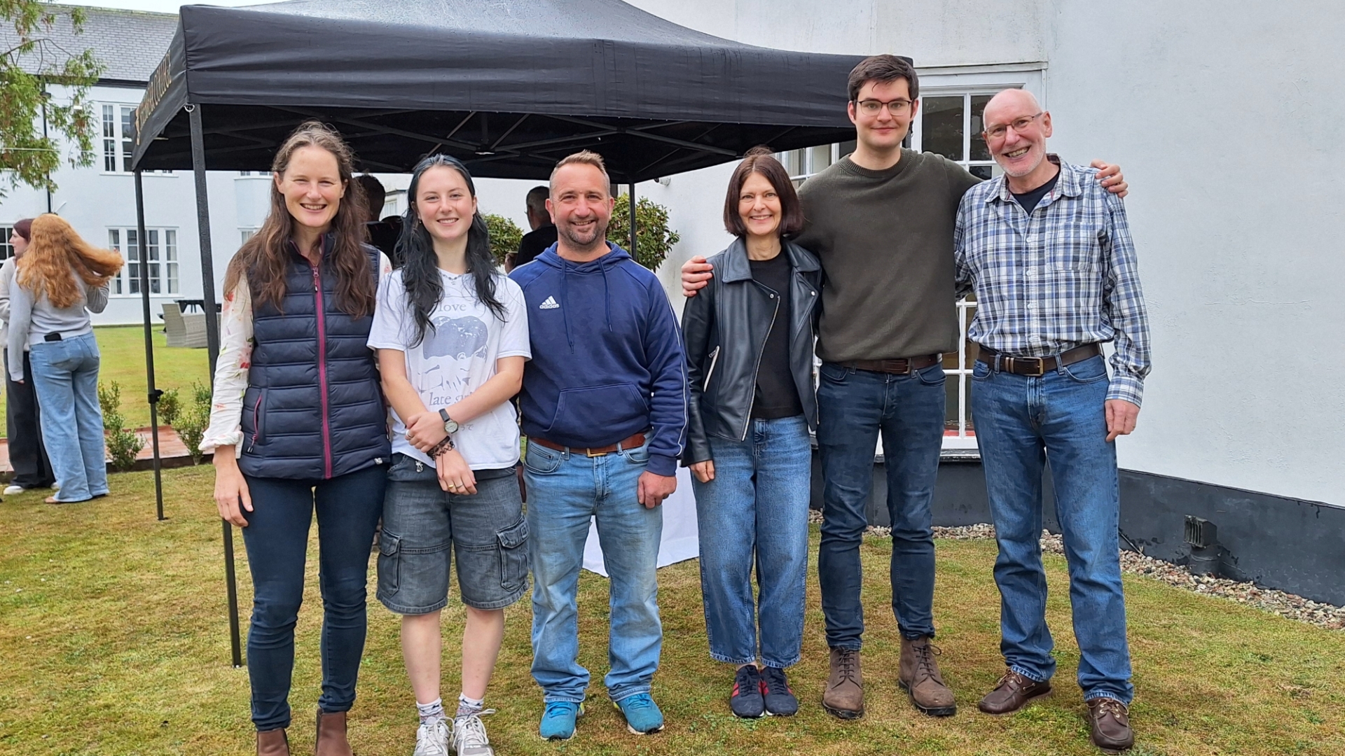 Above: Standout Shebbear College students Alice Hunkin and Sebastian Crookes with their proud families on A Level results day. Credit: Shebbear College