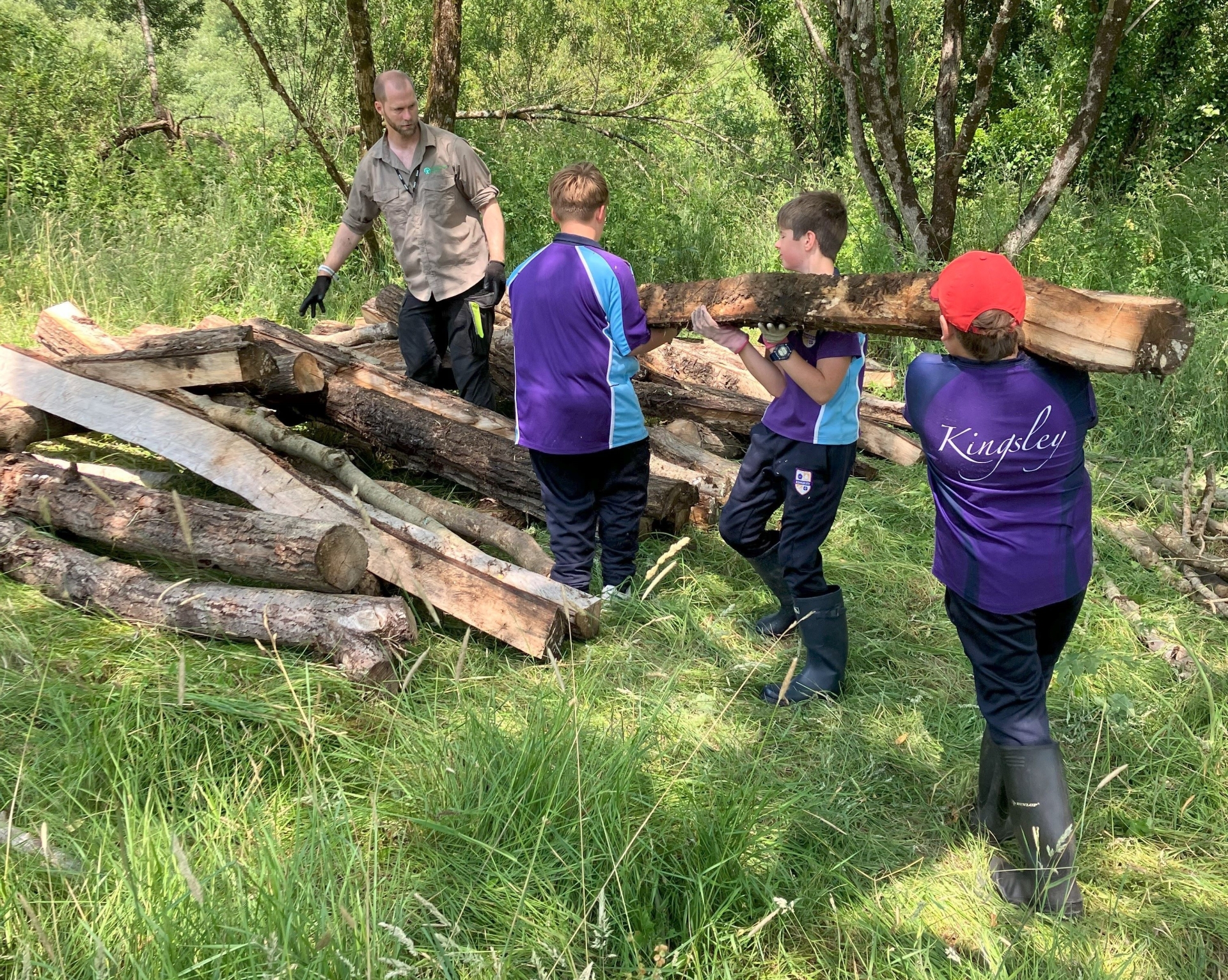 Above: Kingsley School students helping to build the otter habitat alongside the EA and KIER team. Credit: EA