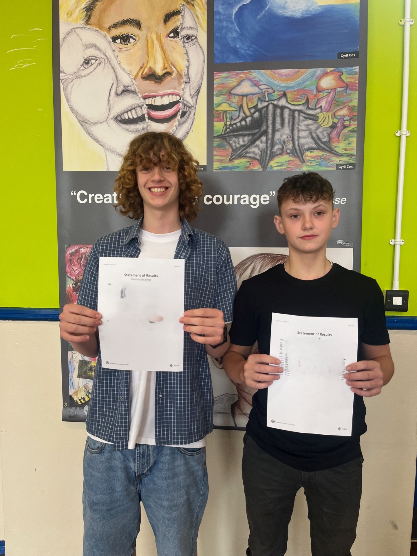 Above: Holsworthy Community College students Jay and James achieved high grades 7 to 9 in all their nine GCSE subjects. Credit: HCC