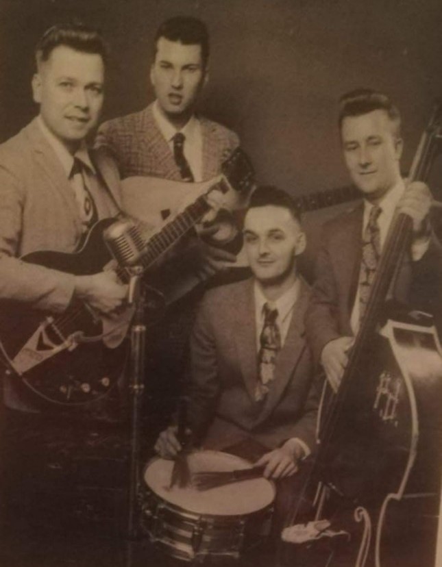 Above: Back in the day - Phil Brock, second left, loved 1950s rock ‘n’ roll and performed with bands most of his life.