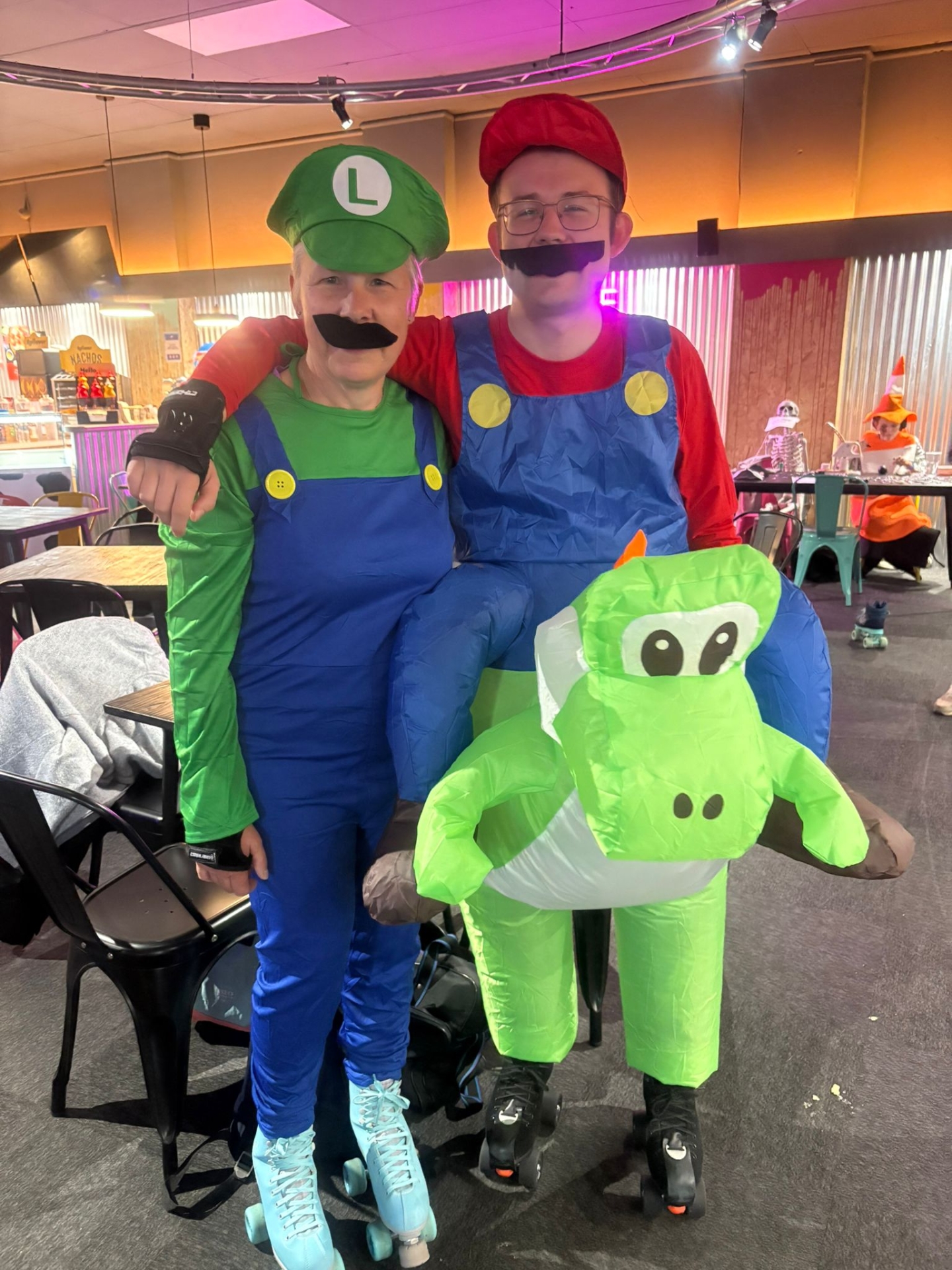 Above: A mum and son duo skated for 12 hours as the Super Mario Bros! Credit: Royal Devon Hospitals Charity