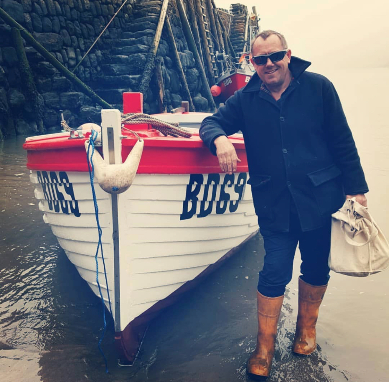 Above and below: Clovelly fisherman and harbour master Stephen Perham with Neptune.