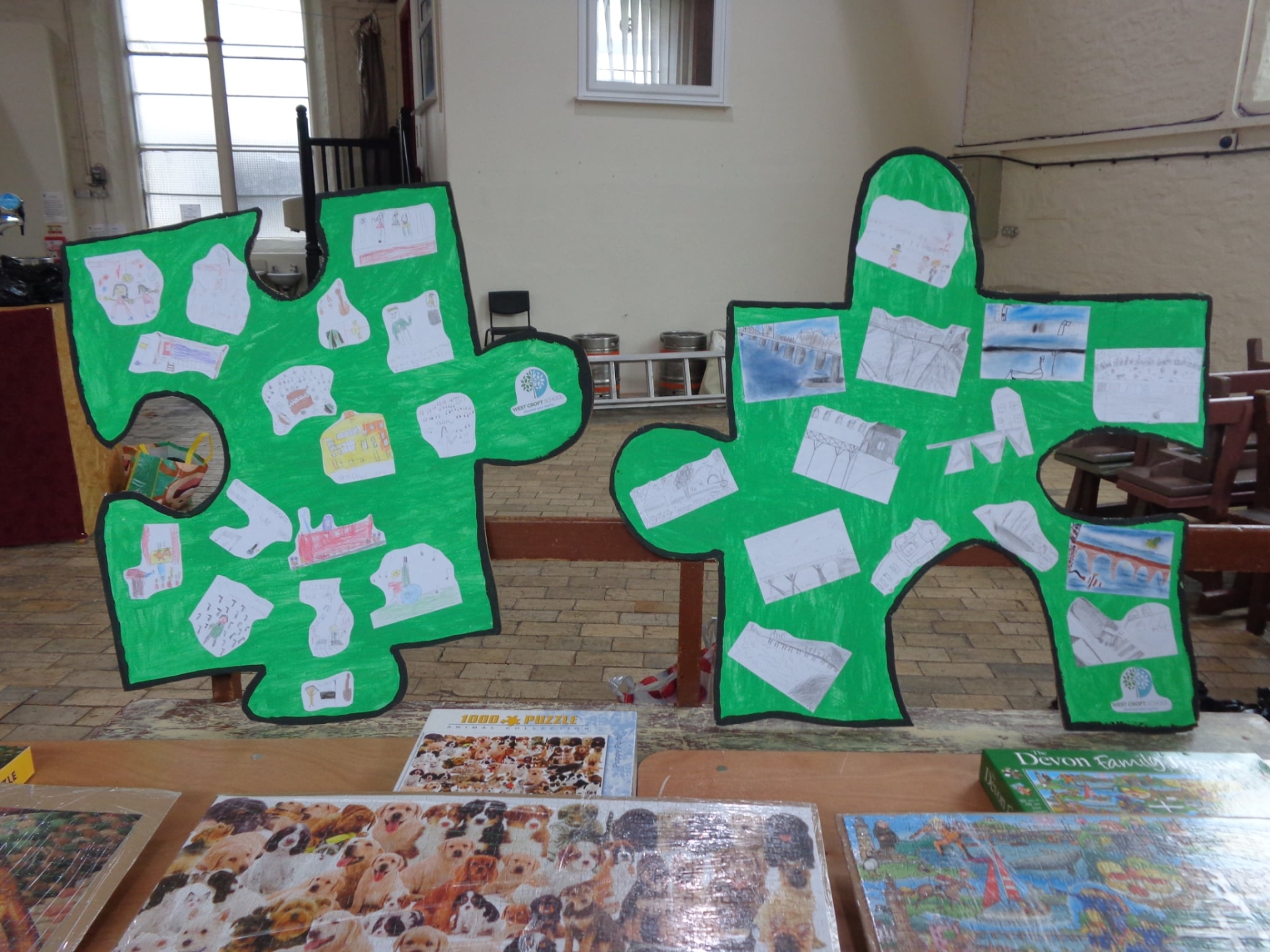 Pupils from Westcroft Primary School made large puzzle piece collages and donated some of their own puzzles.