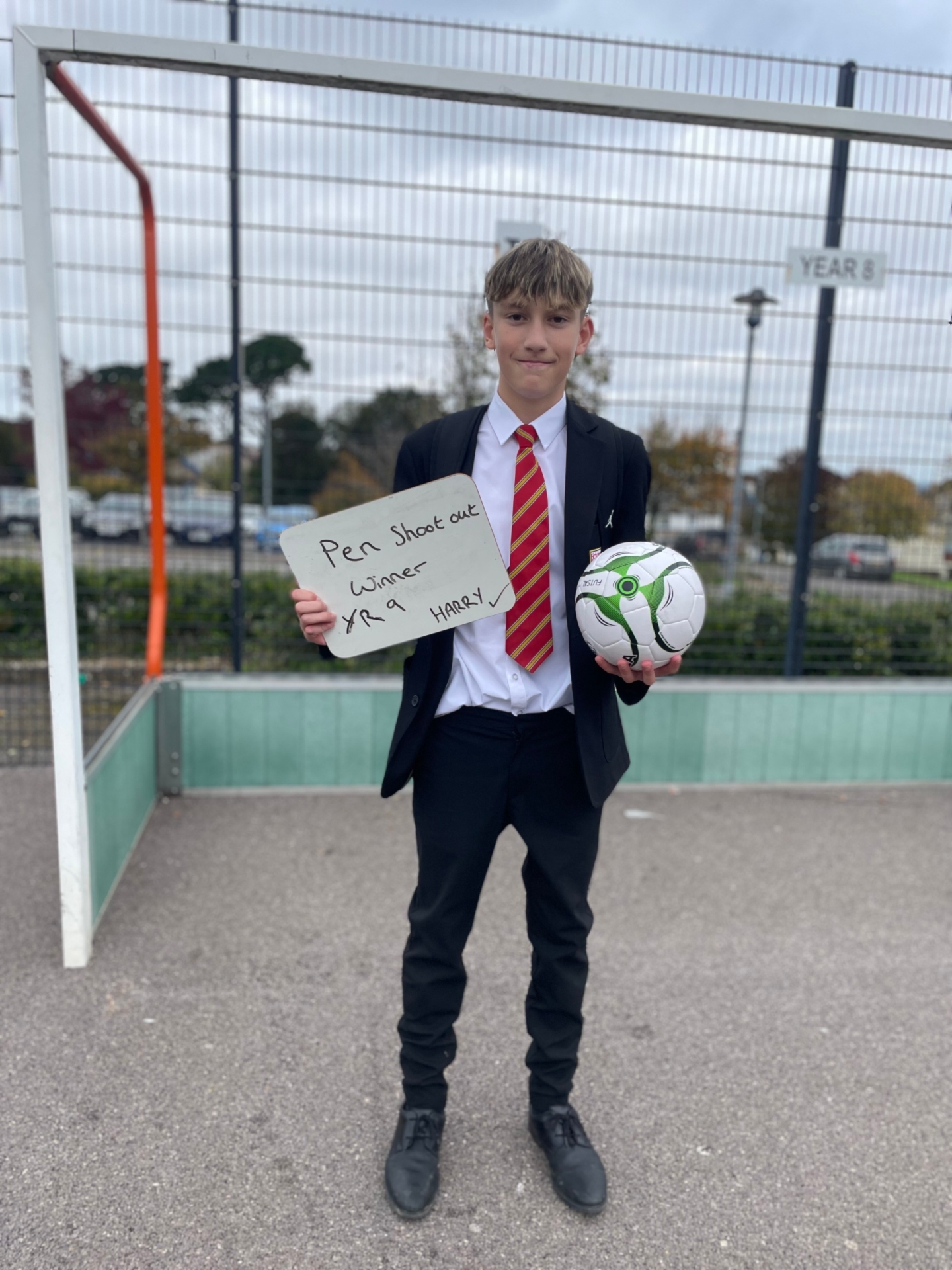Below: Harry from Year 9 was the penalty shoot out winner. Credit: Bideford College