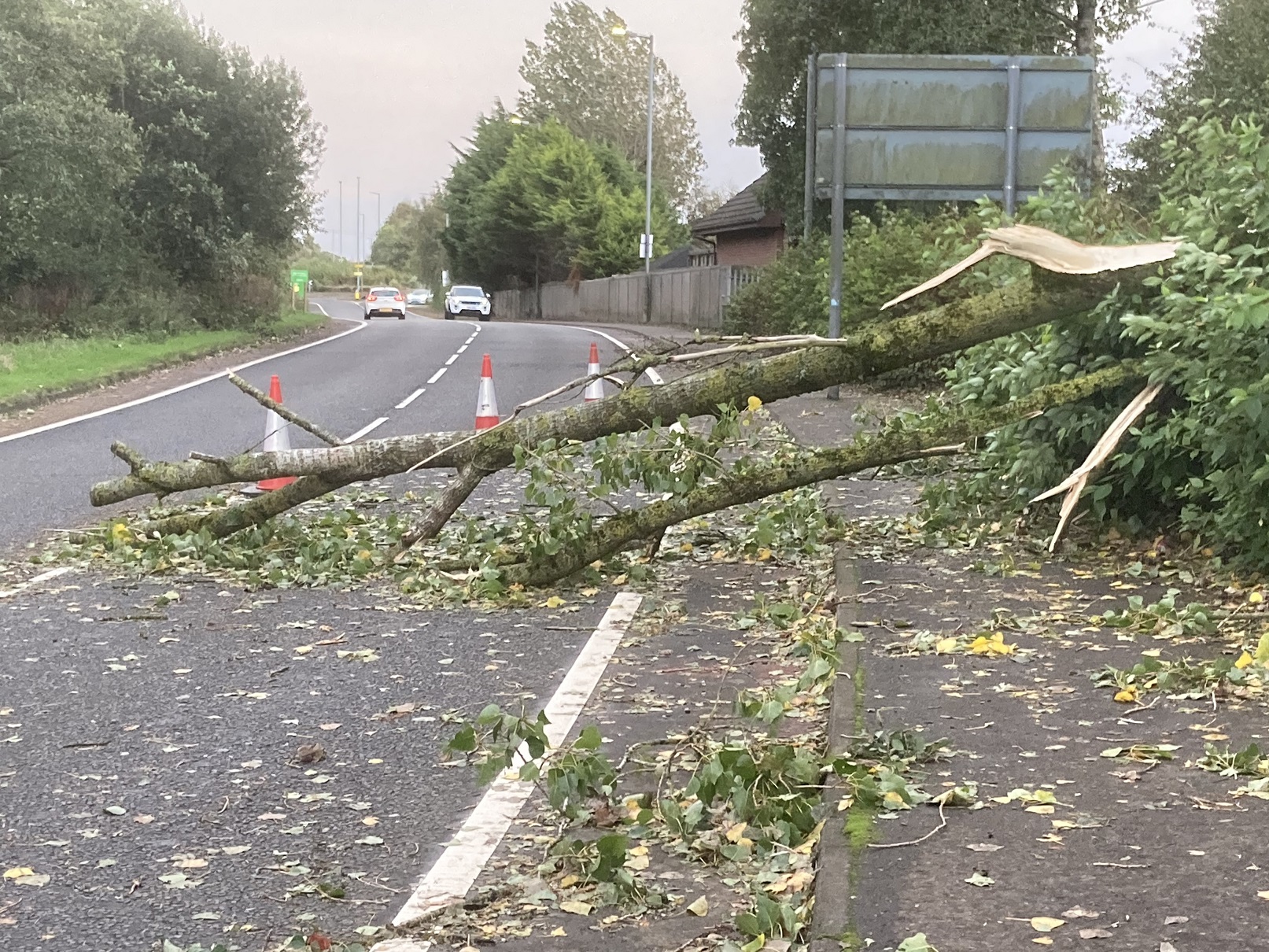 Above: Storm Amy did her best to disrupt proceedings, with run participants facing fallen trees, such as this one pictured near Glasgow. Credit: Tim Hunt