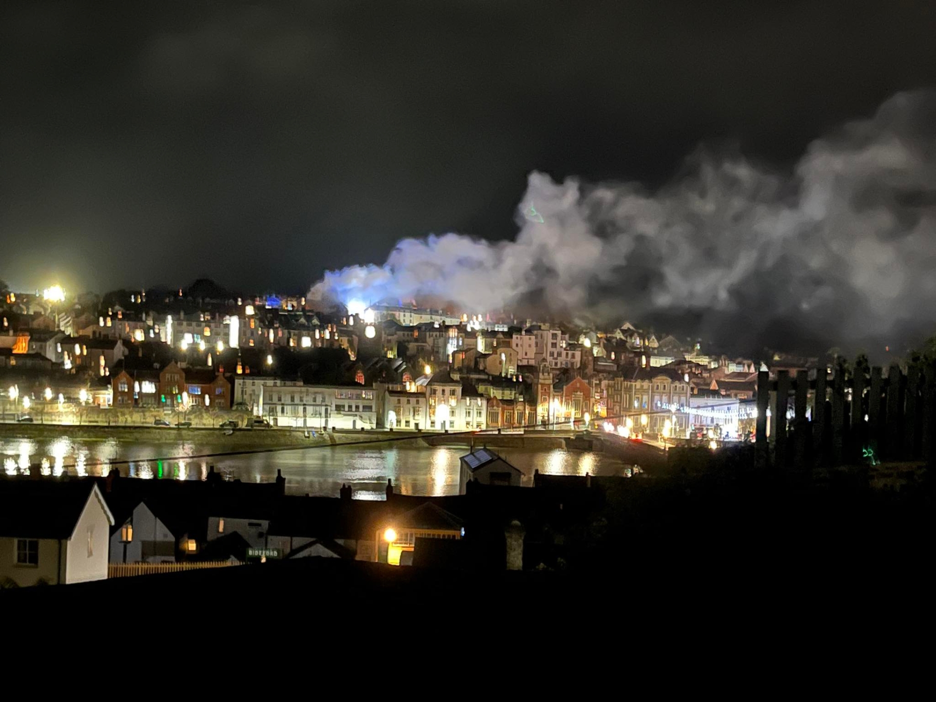 Above: Bideford residents watched smoke billow across the town on Tuesday night while the Honestone Street fire continued. Credit: Teresa Tinsley