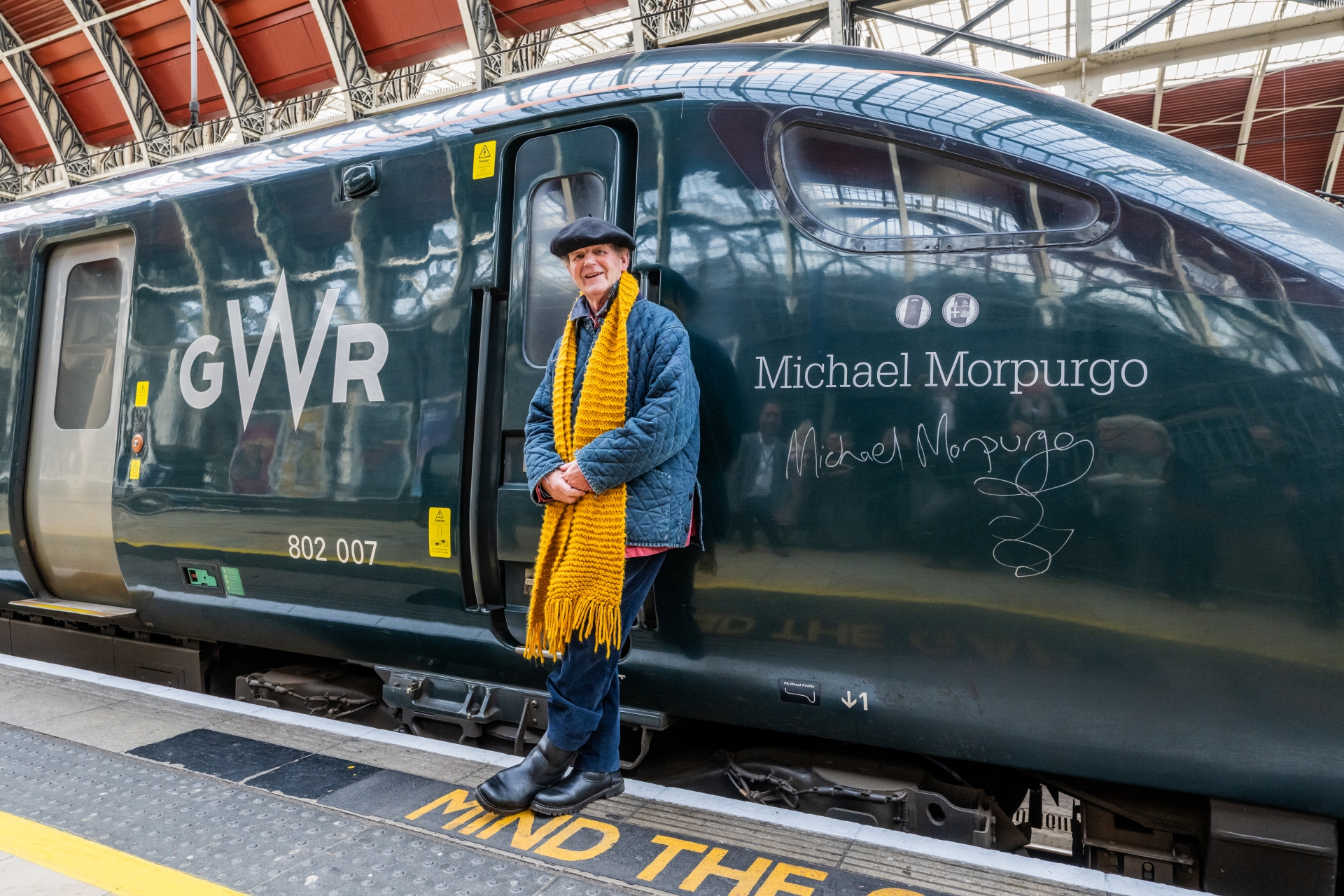 Above: Devon author Michael Morpurgo with ‘his’ train. Credit: GWR