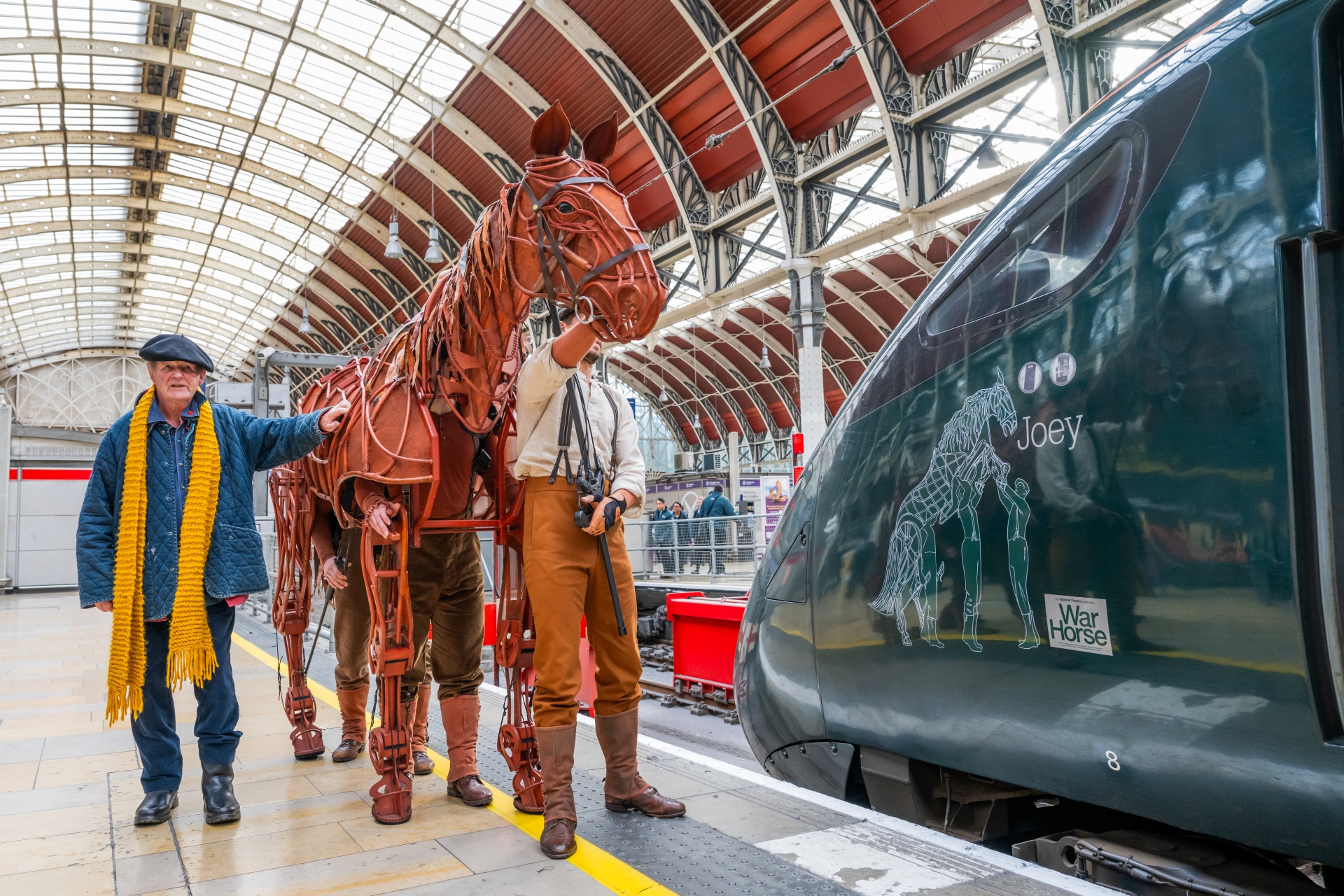 Commuters at Paddington station watched in awe as the astonishing life-sized horse – created by Handspring Puppet Company – walked the course from the iconic war memorial on platform 1 to greet Michael, who then unveiled their train.